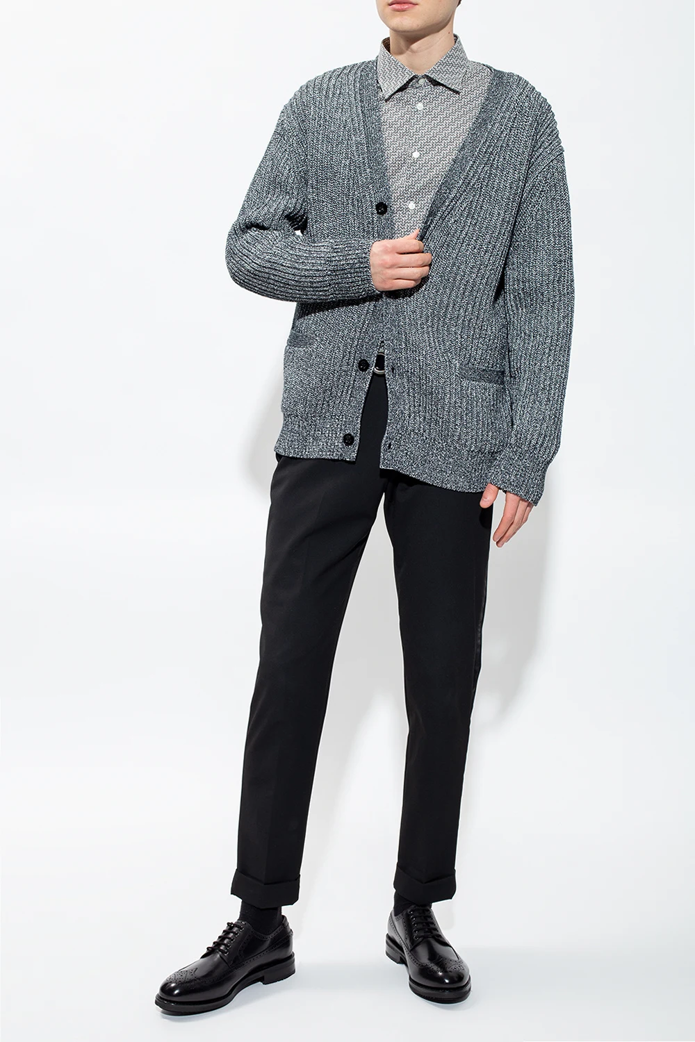Czarne, sznurowane buty typu ‘derby’, model ‘Marcus’ Salvatore Ferragamo. Wykonane ze skóry cielęcej z wykorzystaniem konstrukcji ‘Tramezza’. Ozdobione wycięciami inspirowanymi stylem brytyjskim. Czarna, gumowa podeszwa Vibram® charakteryzująca się dużą przyczepnością, trwałością oraz odpornością na ścieranie.