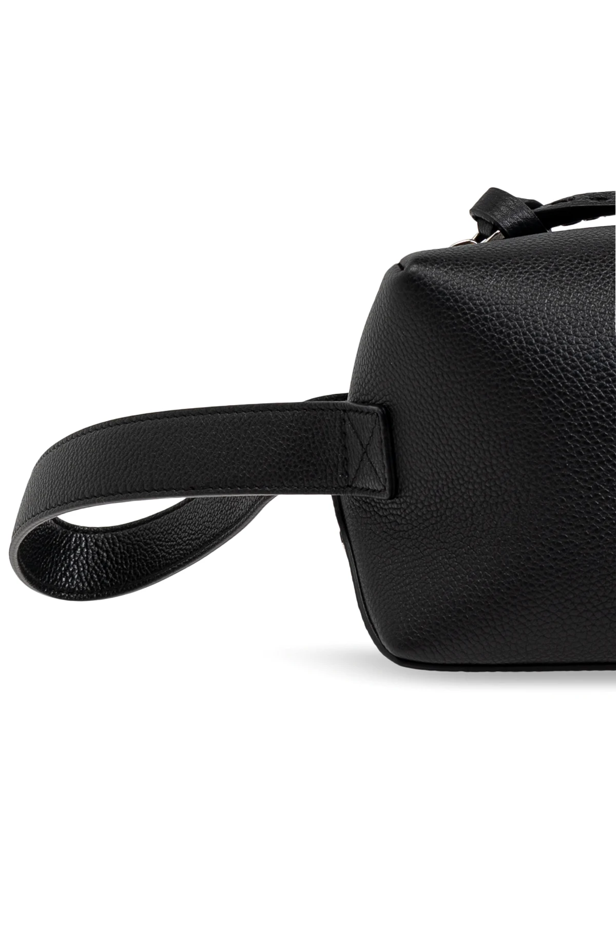 Subtelne logo w formie metalowego znaku na jednym z boków delikatnie sugeruje przynależność do ekskluzywnej marki, podkreślając jednocześnie prestiż kosmetyczki. Wewnątrz znajduje się przestronna komora, idealna do przechowywania podstawowych artykułów toaletowych, co czyni ją niezastąpioną zarówno podczas podróży, jak i w codziennym użytkowaniu.