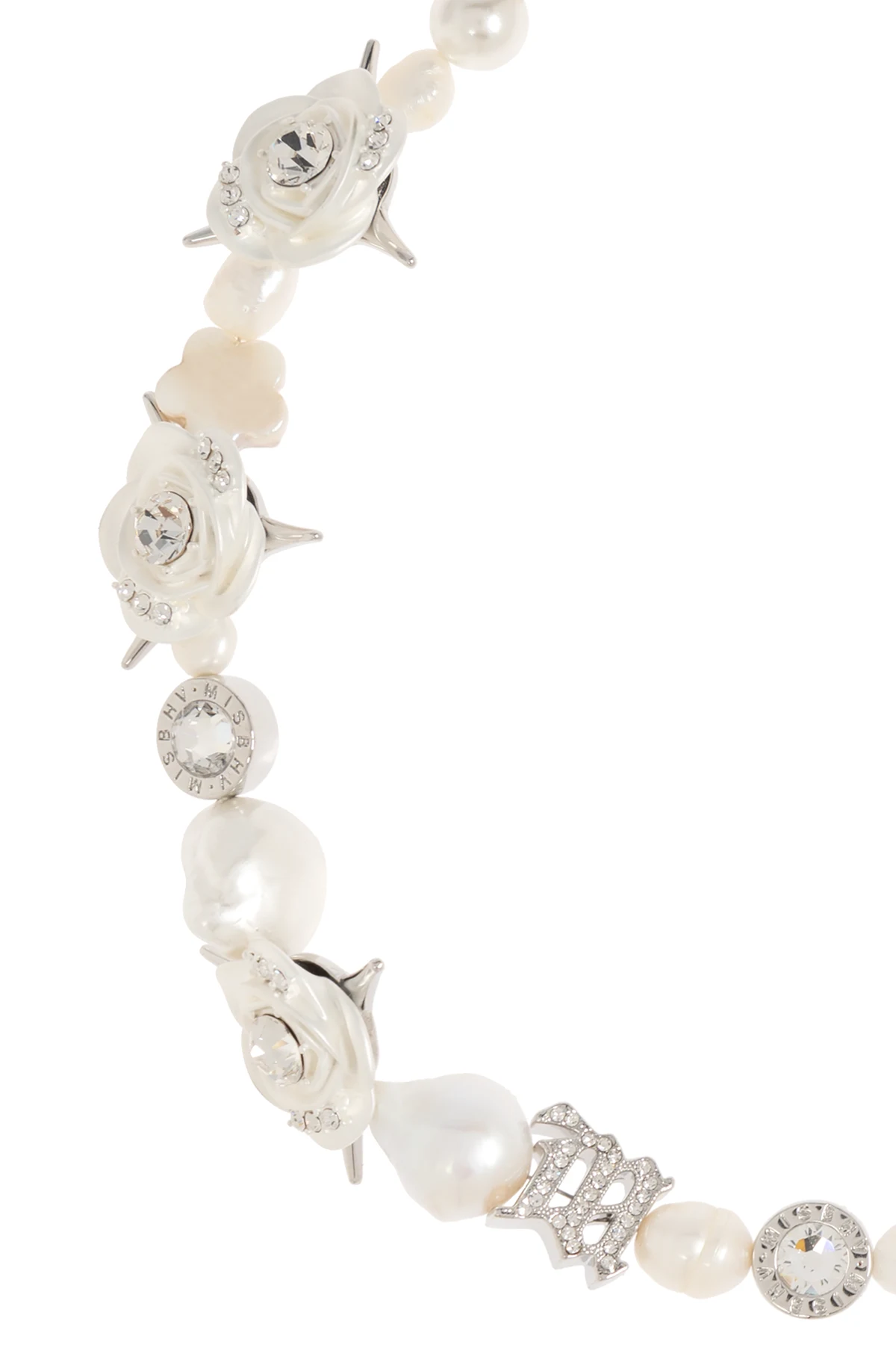 Unikalne połączenie białych pereł i zdobionych kryształkami kwiatów.