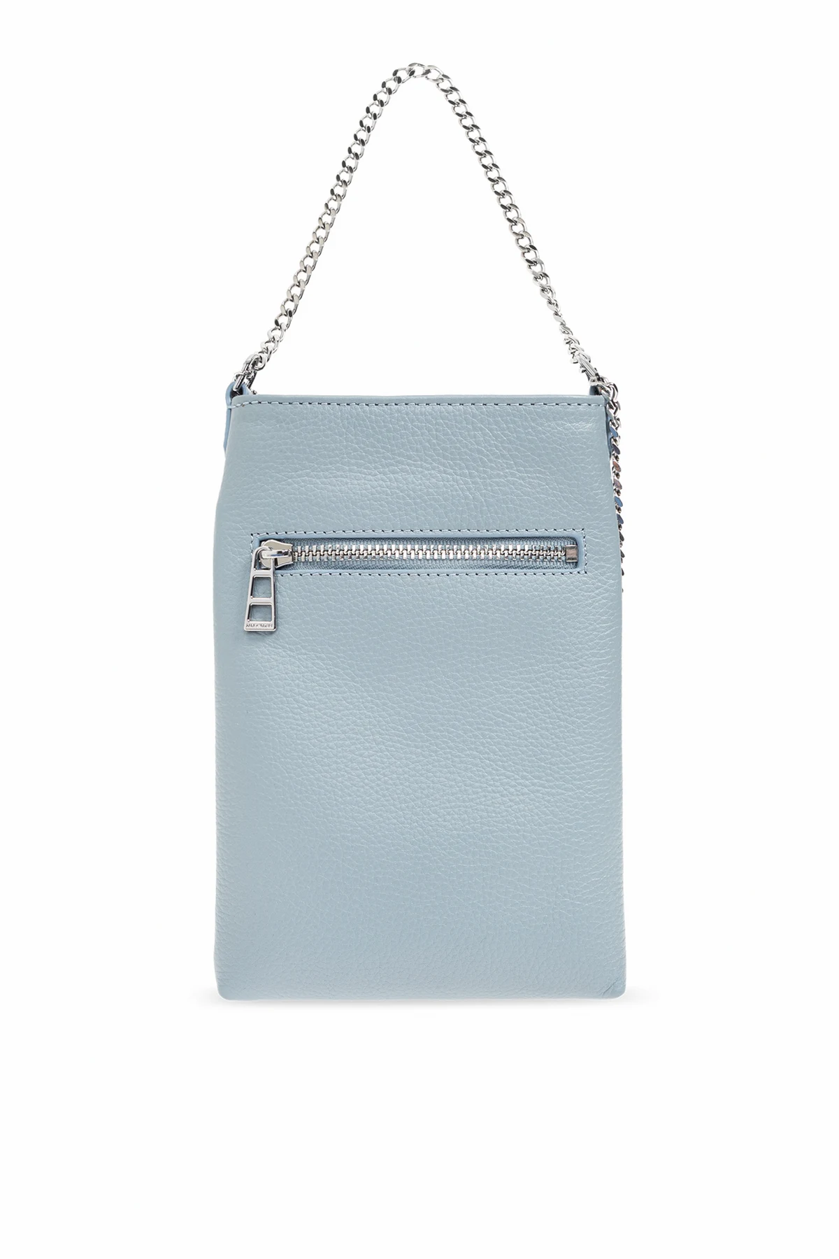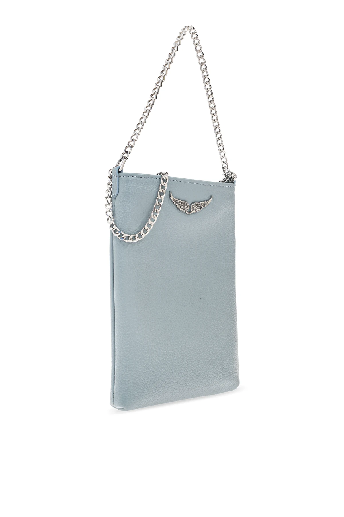 Front etui zdobi intrygujący metalowy element w kształcie skrzydeł , który w połączeniu z srebrnym łańcuchem pełniącym rolę paska, tworzy niepowtarzalny, luksusowy charakter. Z tyłu znajduje się praktyczna kieszeń zamykana na zamek , idealna do przechowywania niezbędnych drobiazgów.