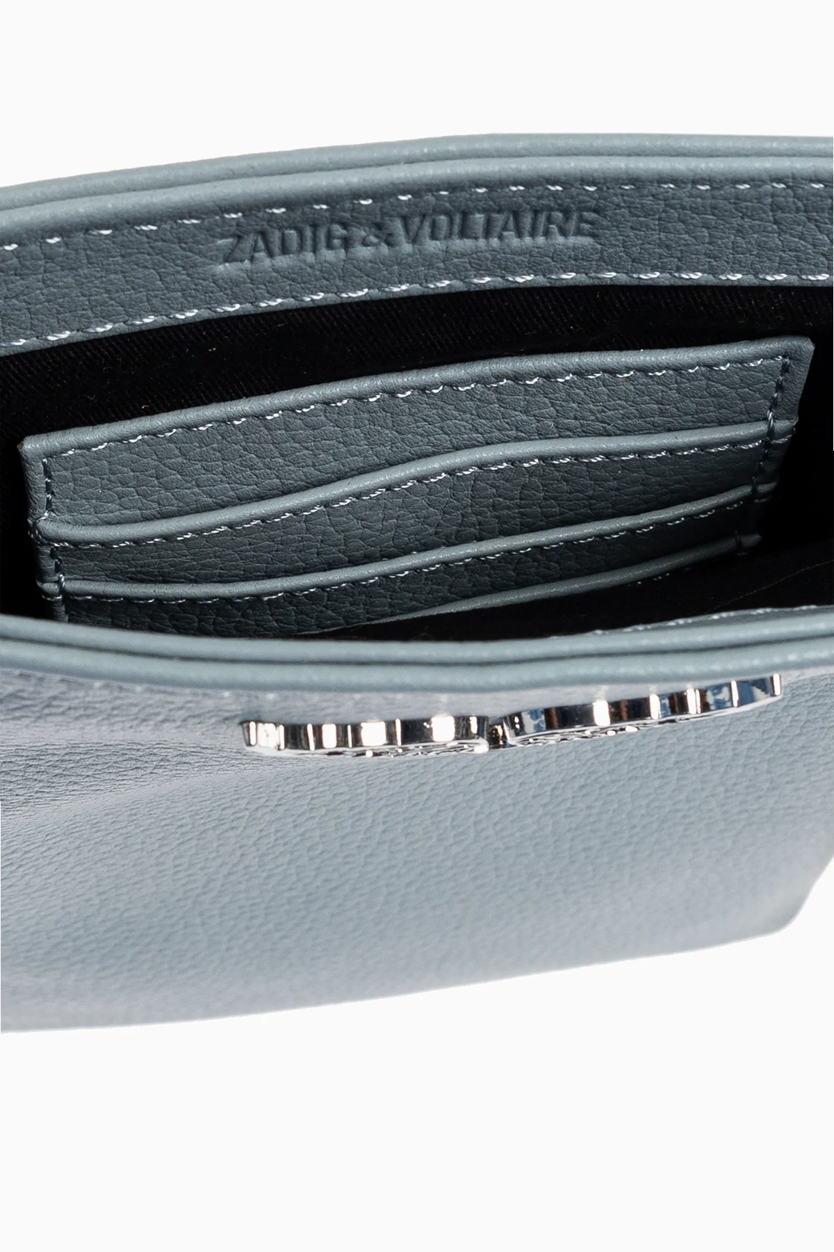 Wnętrze etui kryje wytłoczone logo Zadig & Voltaire , trzy przegródki na karty oraz miejsce na telefon, co czyni je doskonałym połączeniem funkcjonalności z nowoczesnym designem. Stylowy dodatek, który doskonale uzupełni zarówno codzienne, jak i eleganckie stylizacje.
