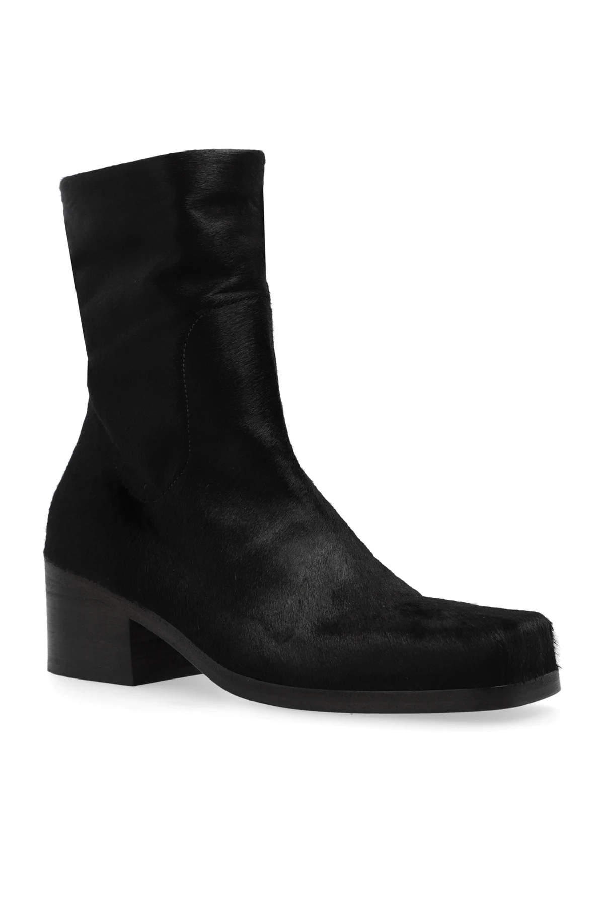 Botki na obcasie od prestiżowej włoskiej marki Marsell to esencja elegancji i nowoczesności. Stworzone z najwyższej jakości skóry, charakteryzują się klasycznym designem z zaokrąglonym przodem oraz starannie wykończoną cholewką sięgającą powyżej kostki. Model ten wyróżnia się solidnym, średniej wysokości obcasem, który zapewnia stabilność i komfort podczas chodzenia.