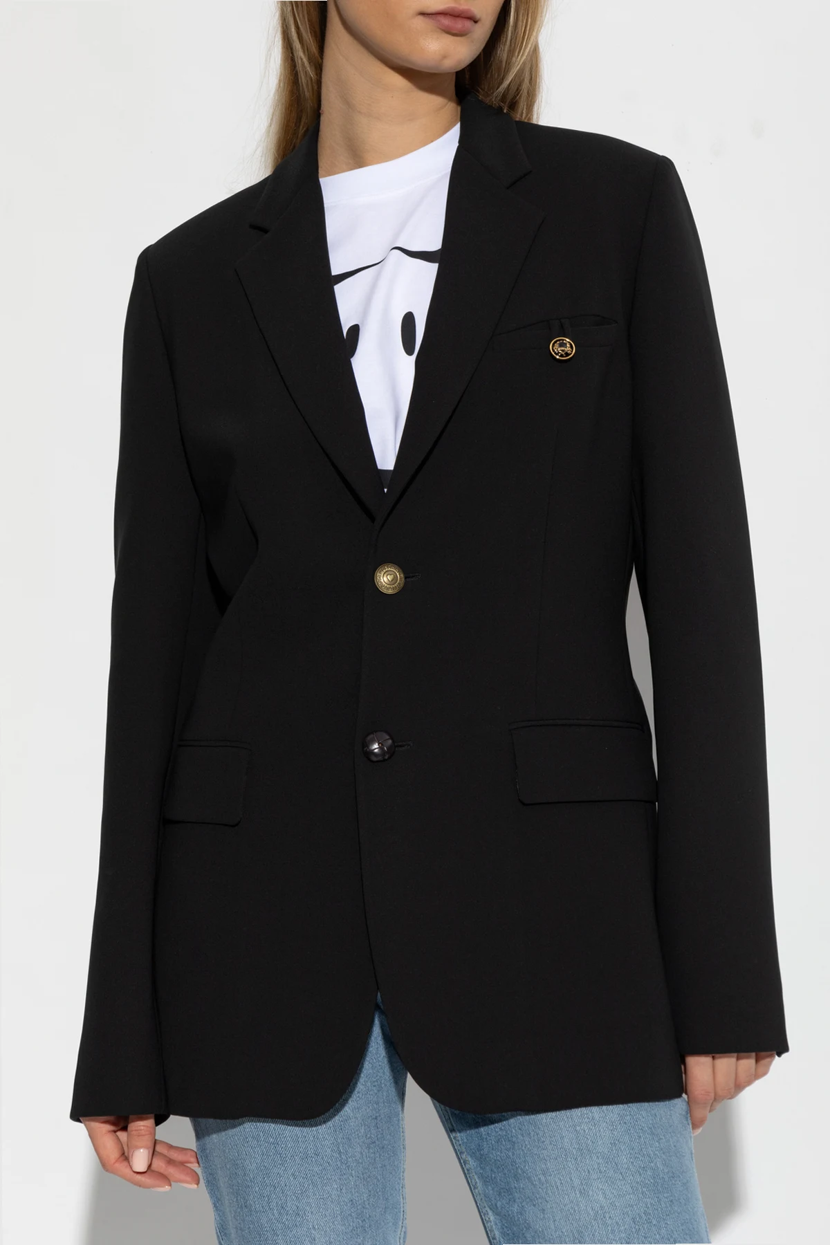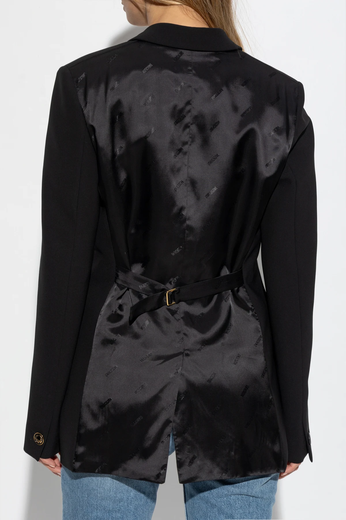 Unikalny złoty guzik z logo Moschino.