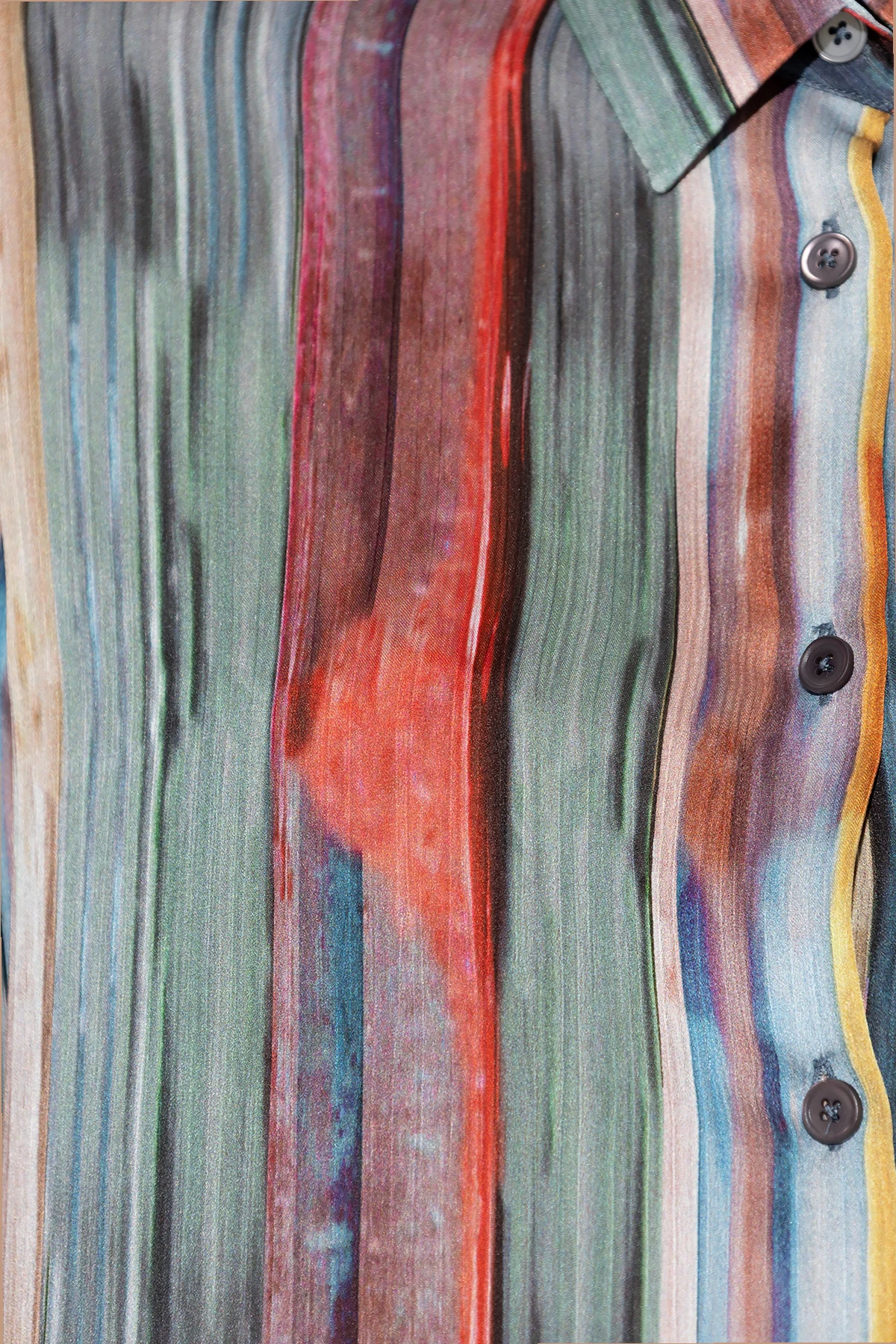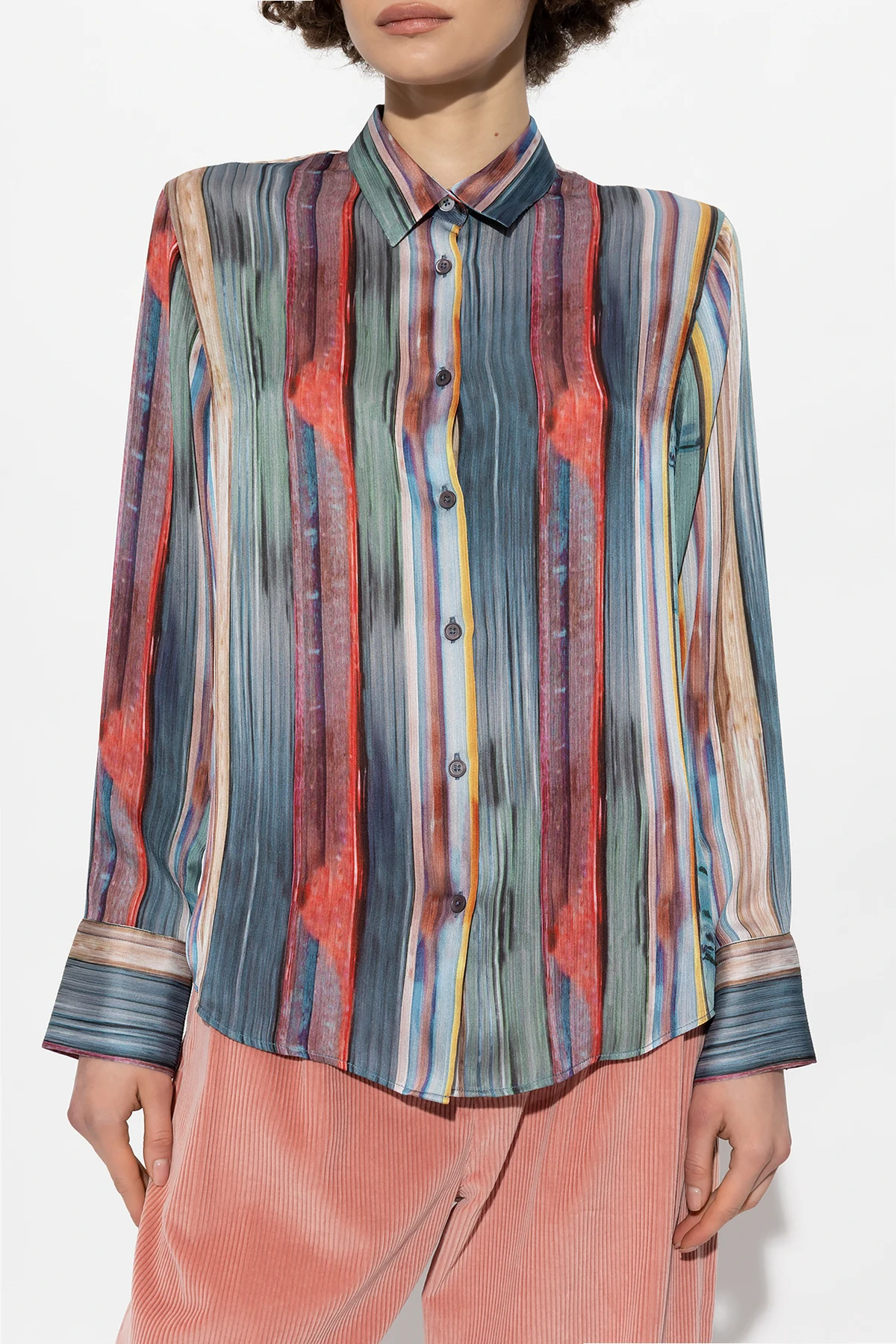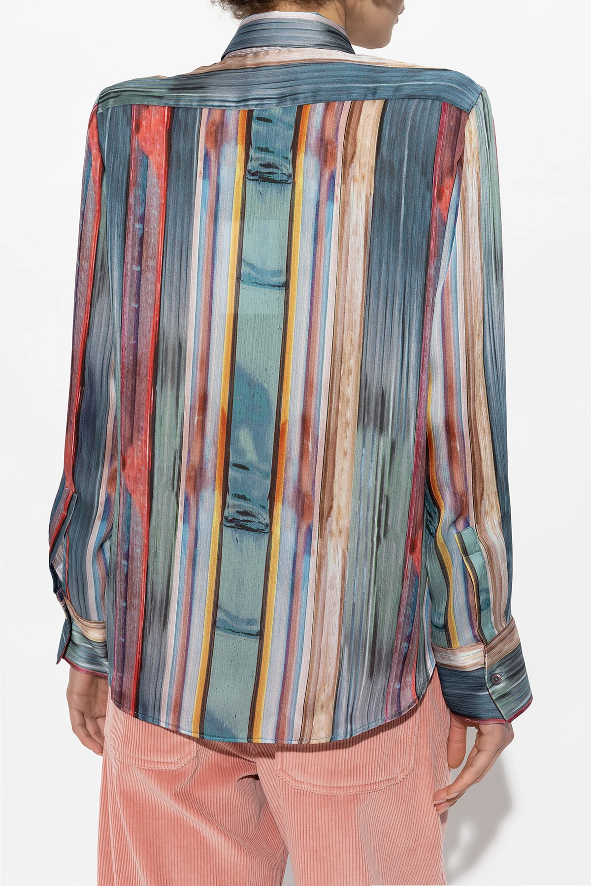 Kolorowa koszula PS Paul Smith. Zapinana na guziki. Ozdobiona wzorem w pasy. Długie rękawy, mankiety zapinane na guzik.