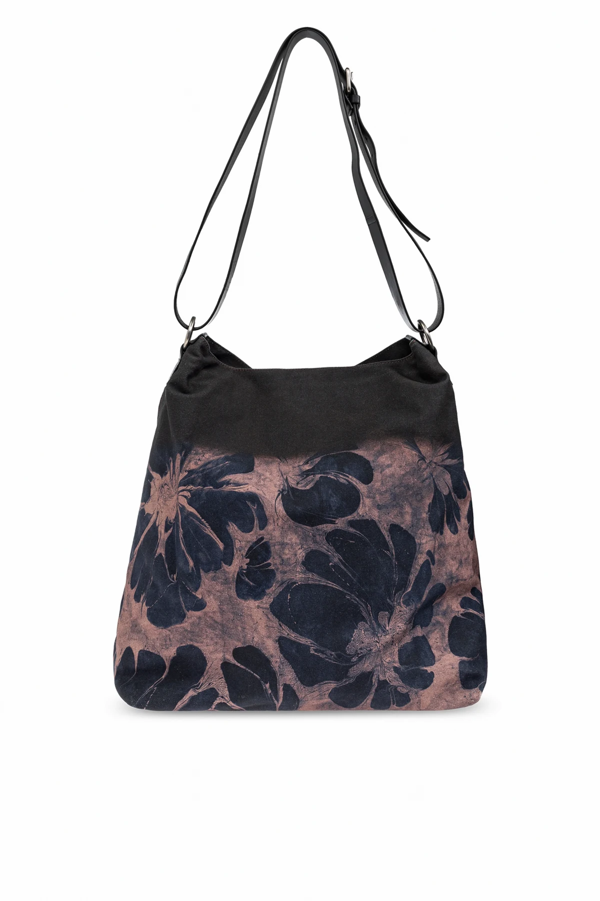 Górna część torby, wykonana z eleganckiej skóry, kontrastuje z kwiecistym wzorem, co dodaje torbie ponadczasowej elegancji. Ten projekt to nie tylko styl, ale i historia - Dries Van Noten, jako członek osławionej Szóstki z Antwerpii, po raz kolejny udowadnia swoje mistrzostwo w tworzeniu niecodziennych krojów i wytwornych tkanin.