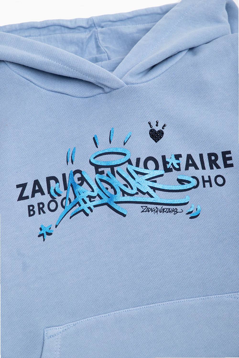 Niebieska bluza z kapturem Zadig & Voltaire Kids. Wykonana z bawełny. Z przodu ozdobiona wzorem z logo. Wsuwana kieszeń. Długie rękawy i dół zakończone ściągaczem.