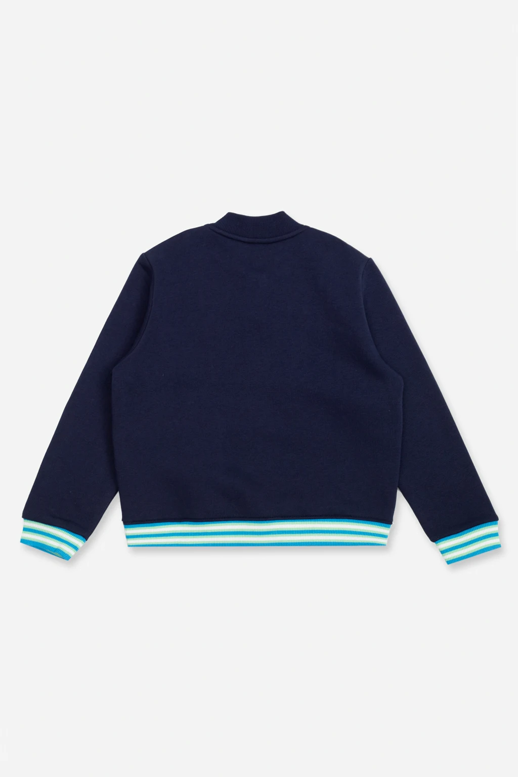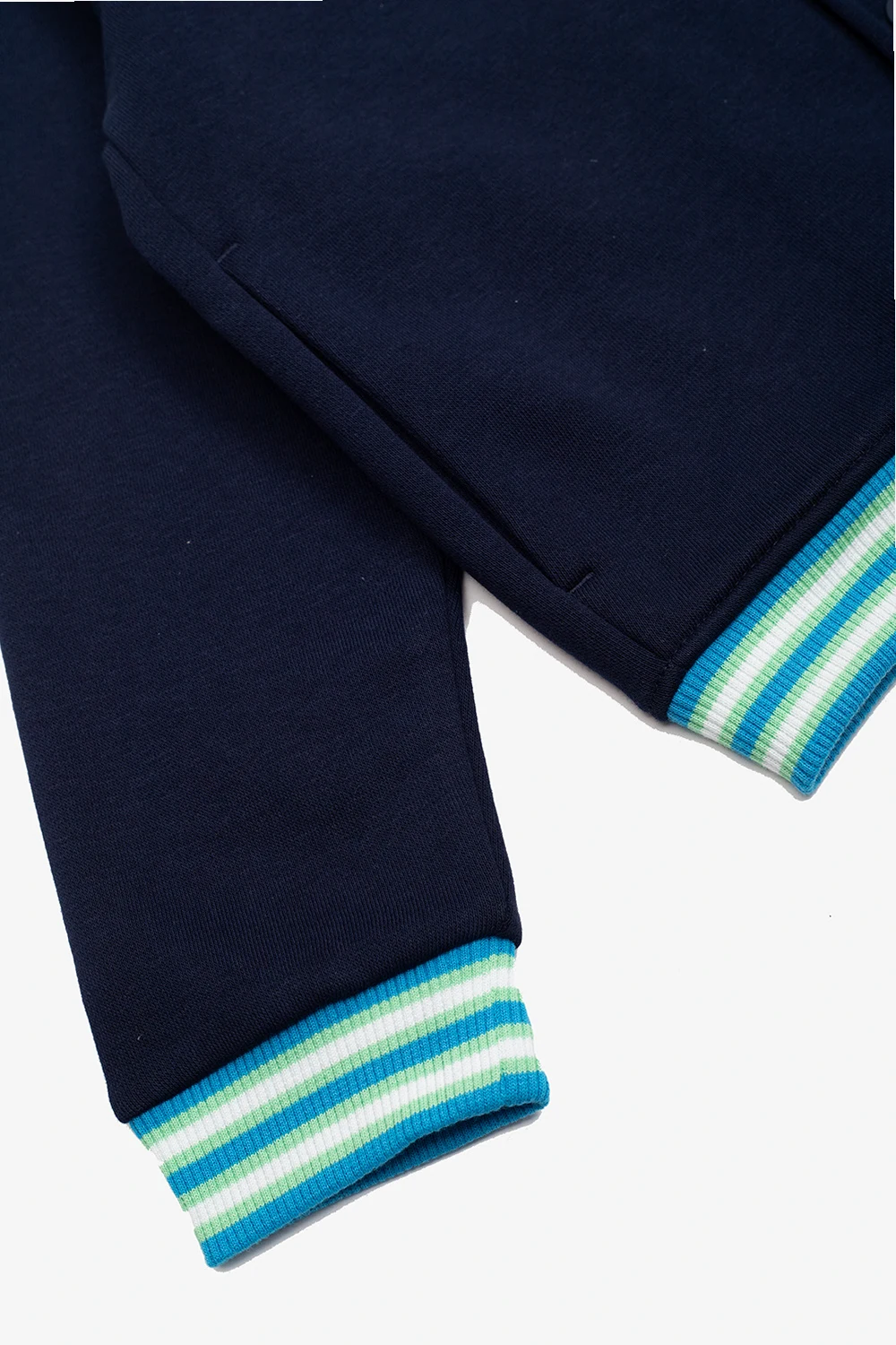 Granatowa bluza Lacoste Kids. Wykonana z mieszanki bawełny. Zapinana na zatrzaski. Z przodu ozdobiona zieloną naszywką z logo. Dwie wsuwane kieszenie. Długie rękawy i dół zakończone niebiesko-zielono-białym ściągaczem.