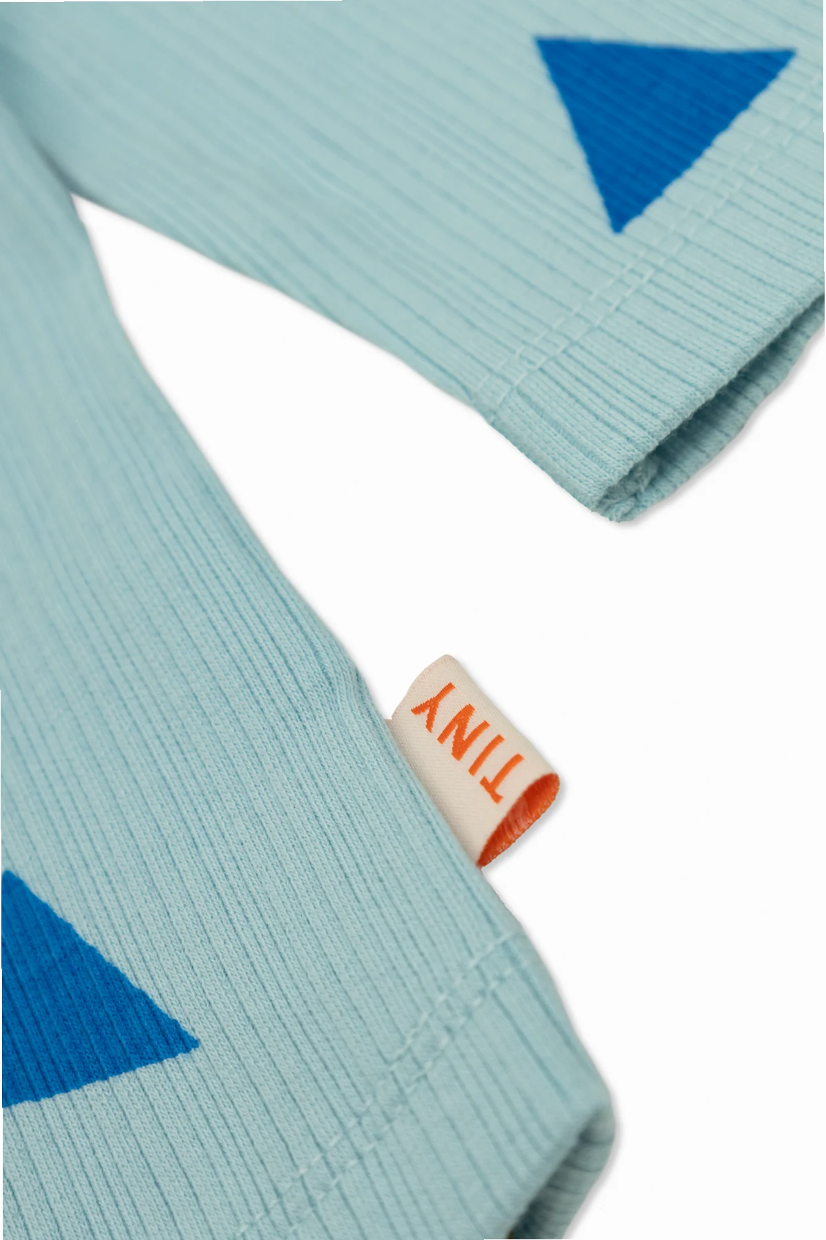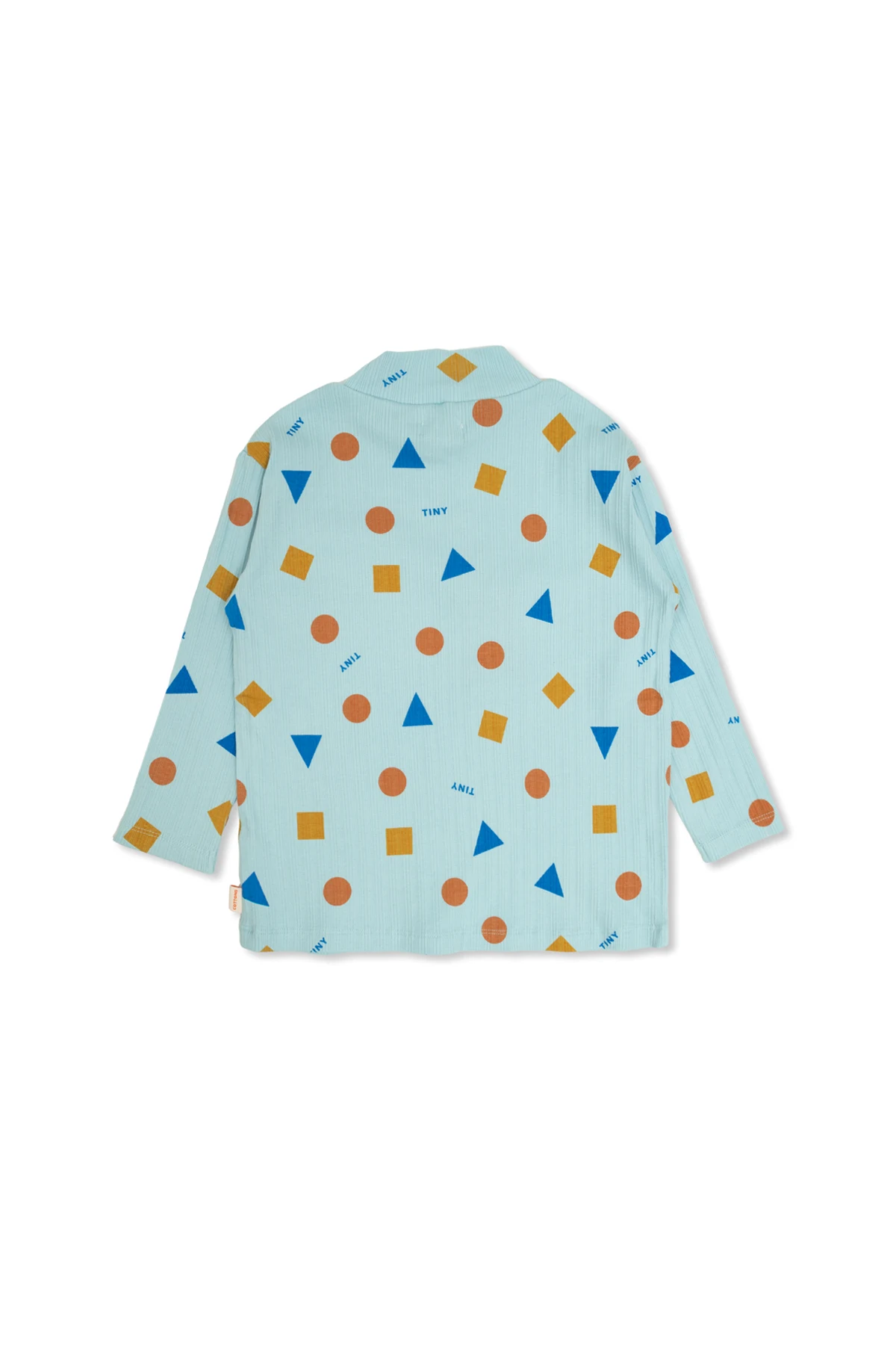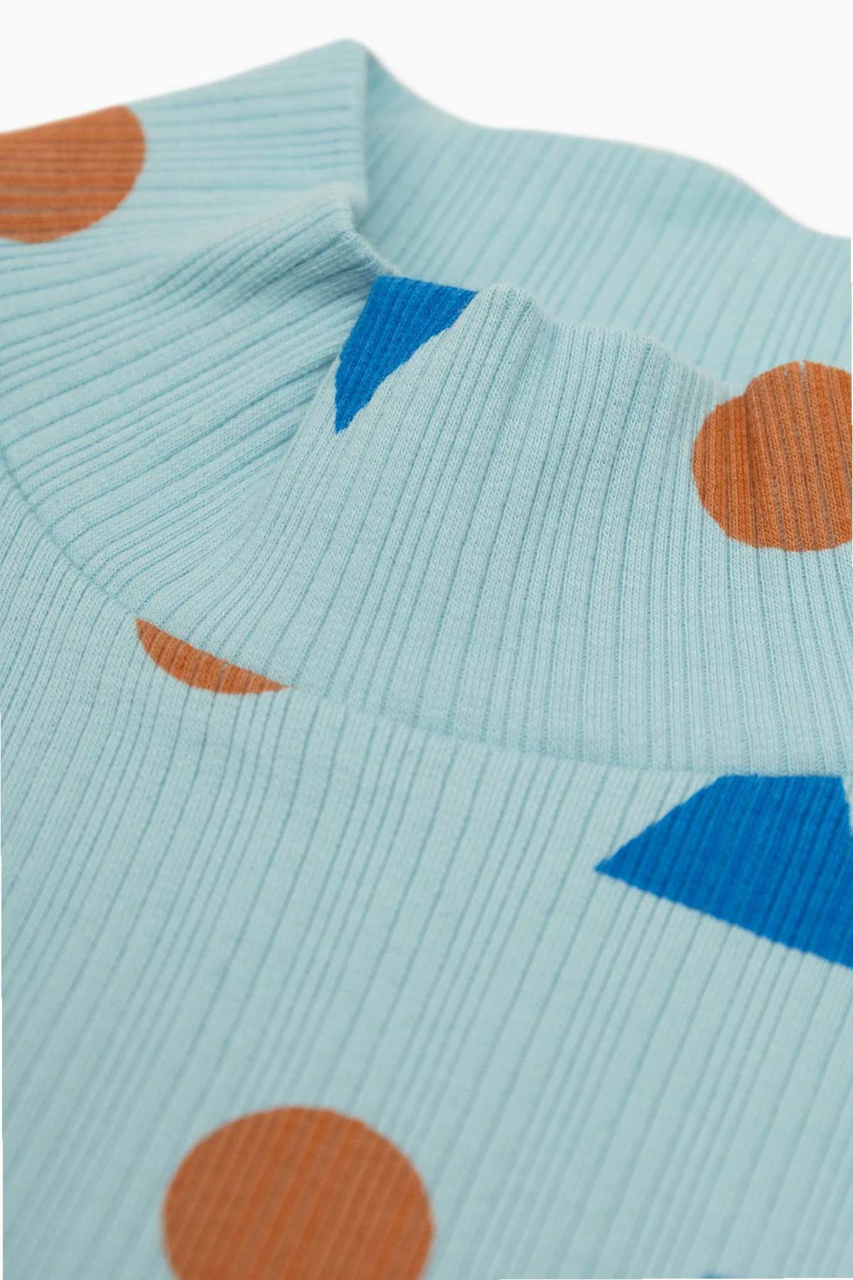Przedstawiamy ekskluzywny top z nadrukiem marki Tiny Cottons, doskonale wpisujący się w kategorię eleganckiej odzieży dziecięcej. Produkt urzeka swym dominującym niebieskim kolorem, ozdobionym kolorowymi, geometrycznymi kształtami – pomarańczowymi kółkami, żółtymi kwadratami oraz niebieskimi trójkątami. Charakterystyczne drobne napisy dodatkowo podkreślają jego unikatowość.