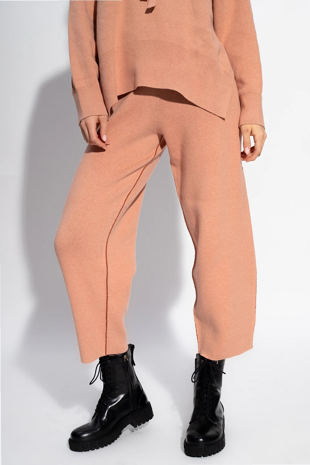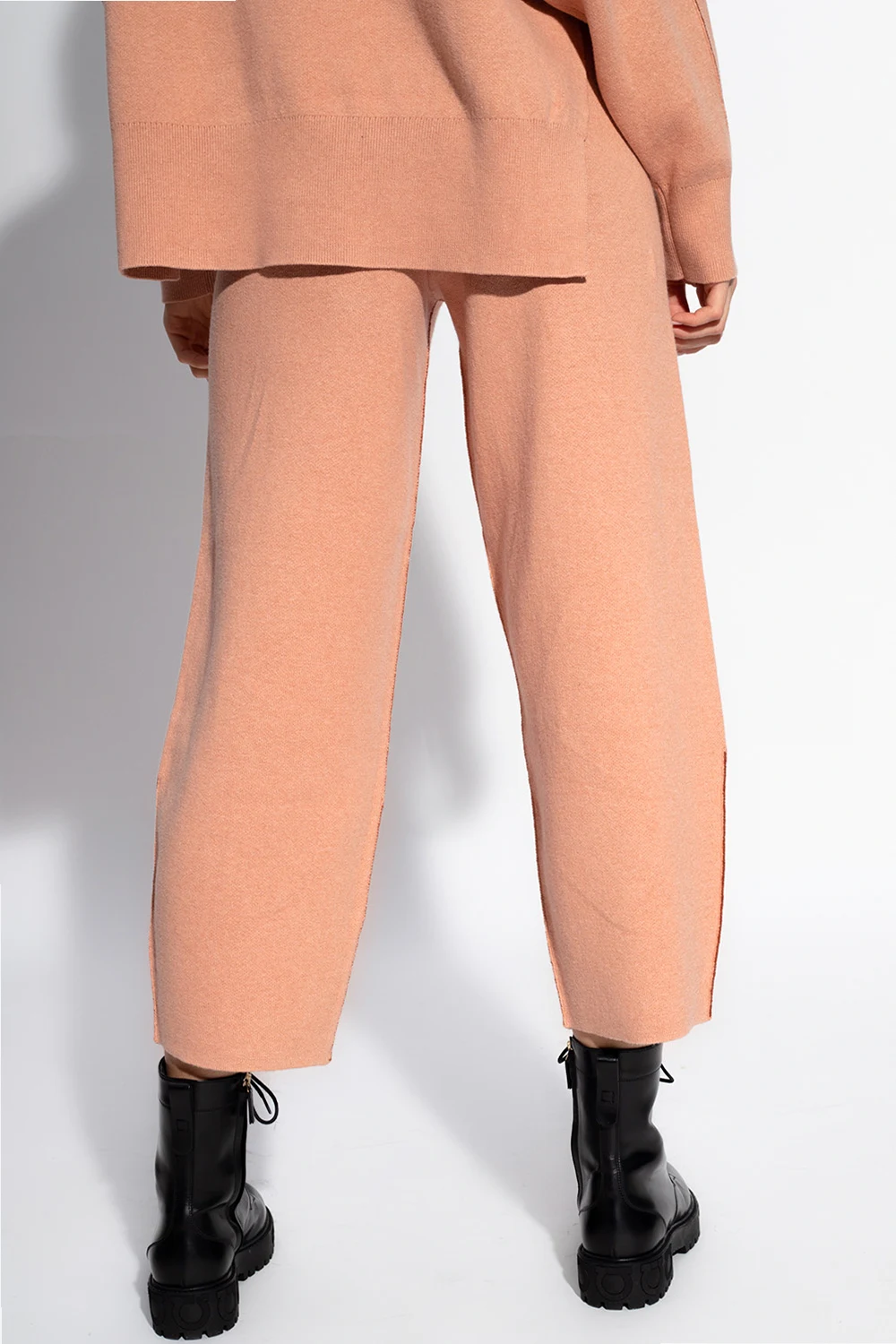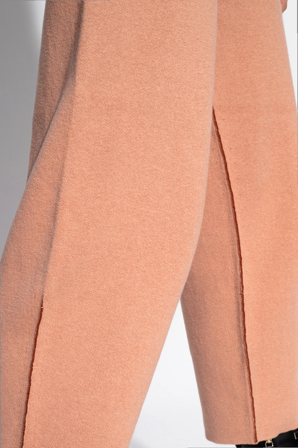 Różowo-beżowe, bawełniane spodnie o luźnym kroju Proenza Schouler White Label. W pasie wszyta guma. Zwężane nogawki.