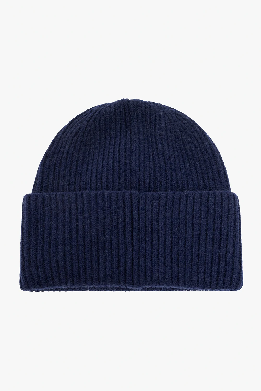 – Mała prążkowana czapka beanie z dzianiny o splocie angielskim w granatowym kolorze