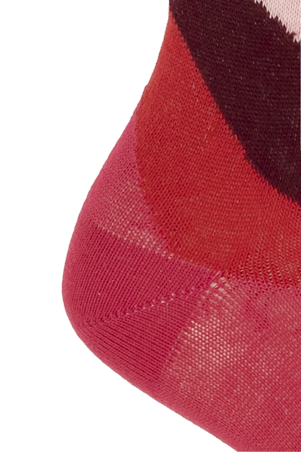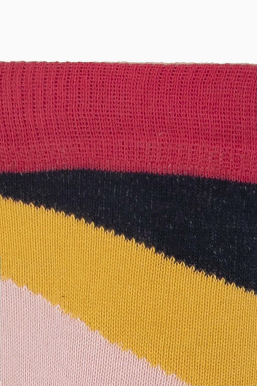 Kolorowe, bawełniane skarpety Paul Smith. Ozdobione wzorem w pasy i nadrukowanym białym logo. Zakończone ściągaczem.