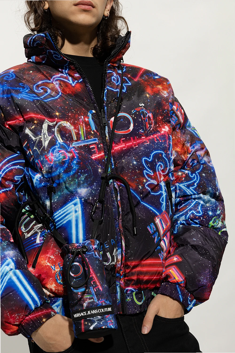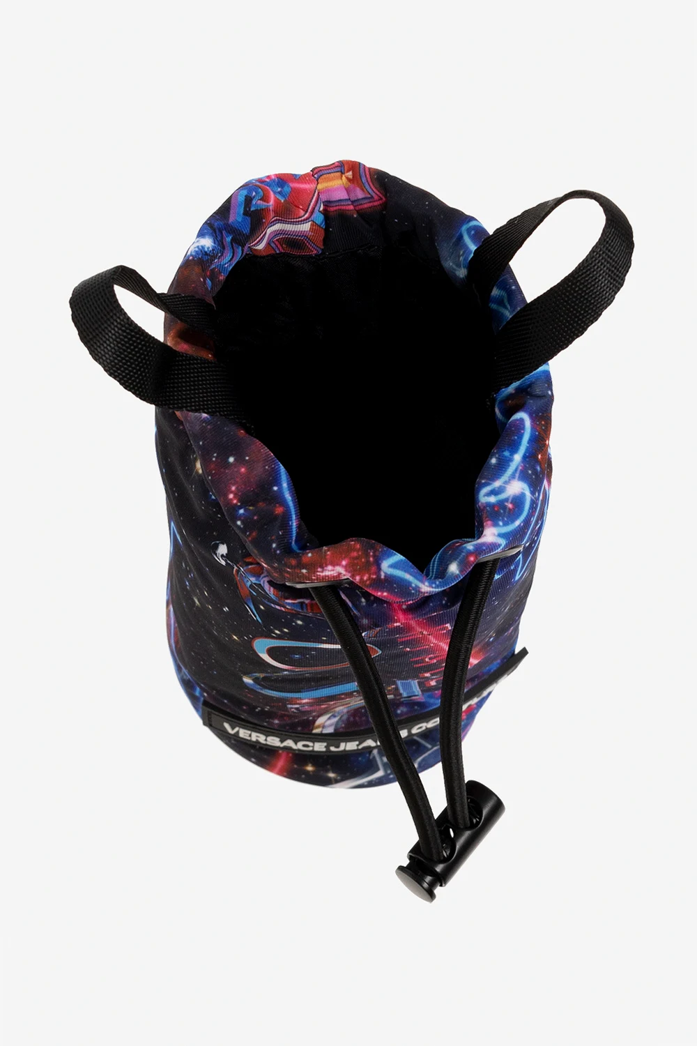 Kolorowe etui na butelkę Versace Jeans Couture. Na górze ściągane trokami. Ozdobione charakterystycznym dla marki wzorem ‘Space Couture’. Z przodu gumowa naszywka z logo. Regulowany pas z zapięciem na karabińczyki. Wewnątrz komora.