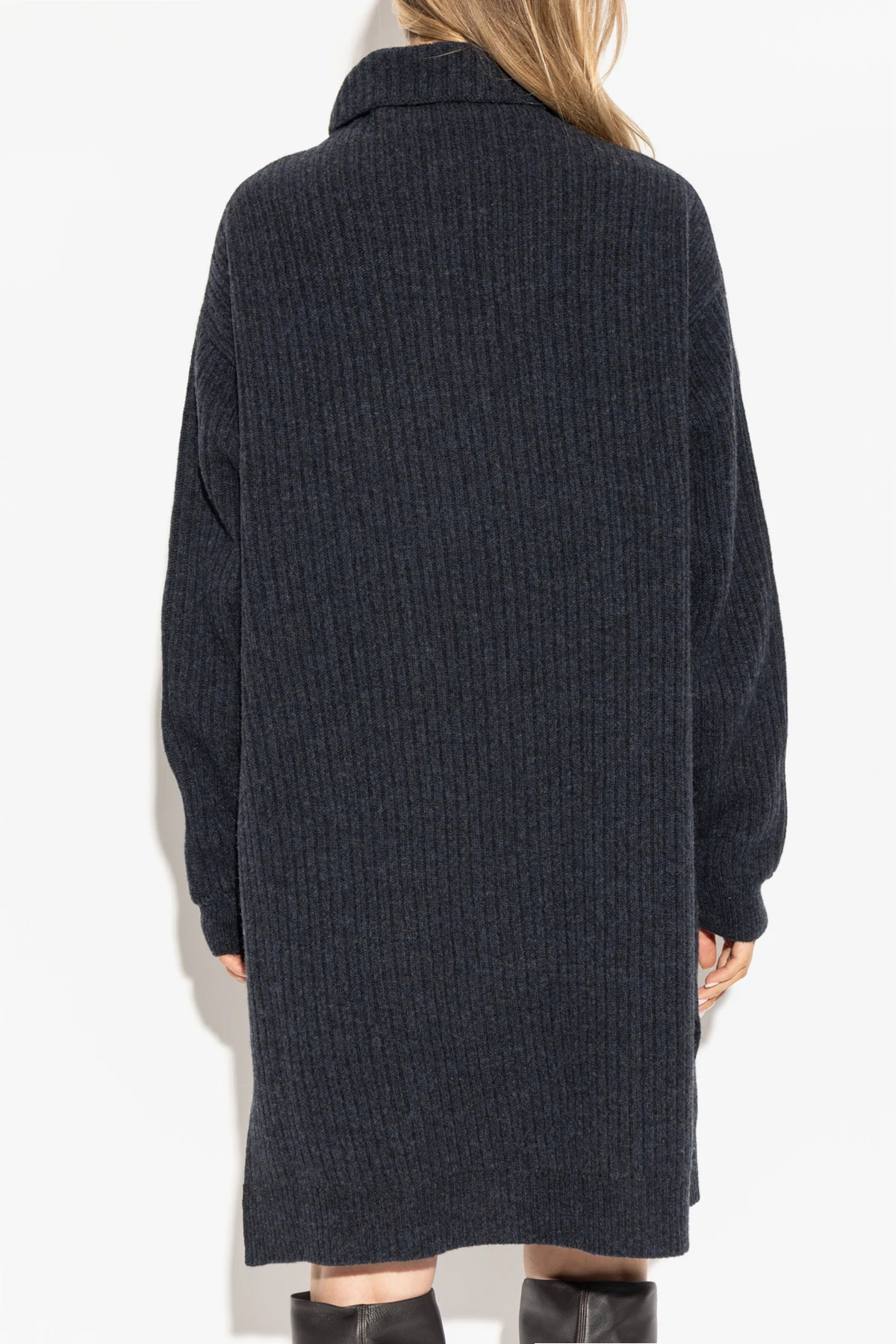 Wykonana z najwyższej jakości wełny , sukienka zapewnia ciepło i komfort, idealne na chłodniejsze dni. Prosty, luźny krój , sięgający do kolan, oraz długie, luźne rękawy nadają jej swobodnego, lecz eleganckiego charakteru. Wyraźny, prążkowany wzór materiału dodaje tekstury i wizualnego zainteresowania.