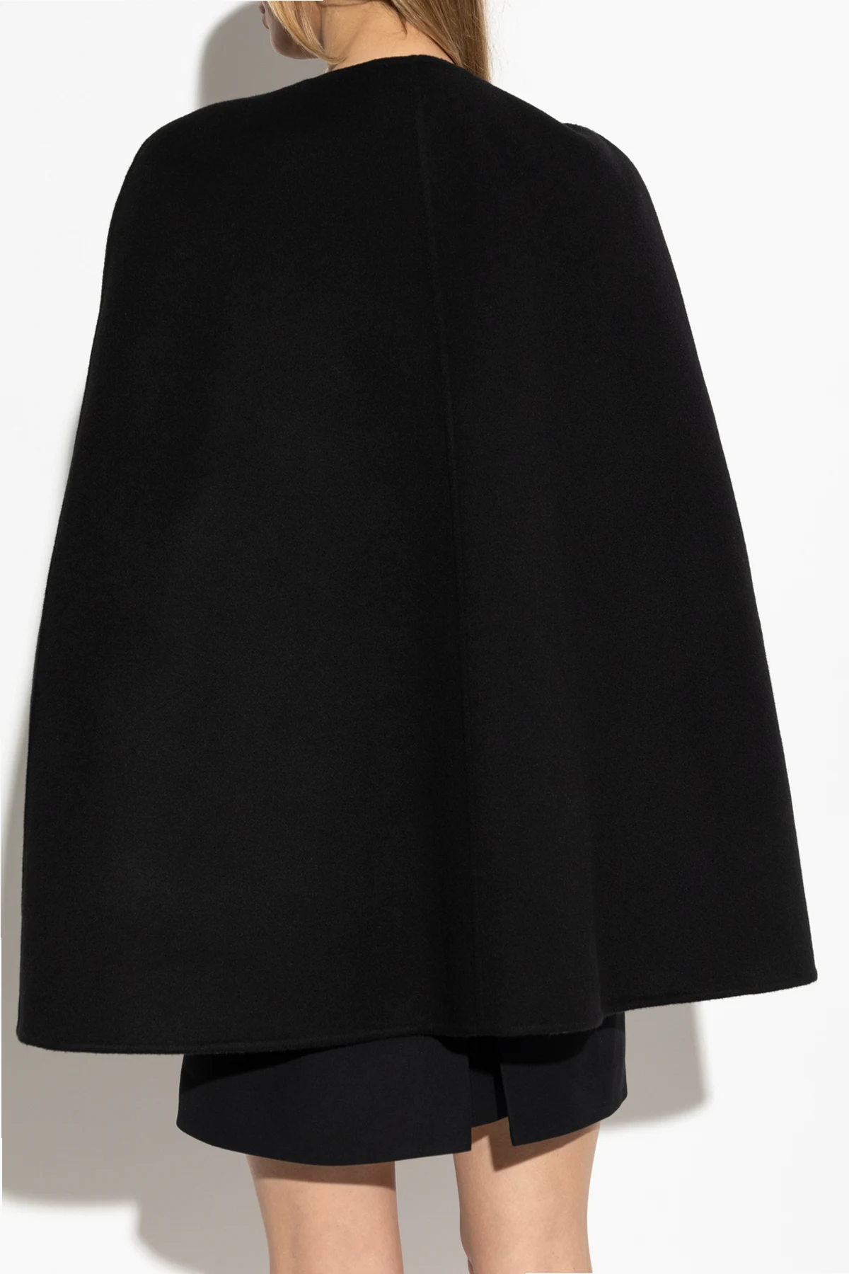 Przedstawiamy Wełniane Ponczo od prestiżowej marki Gucci, będące kwintesencją elegancji i nowoczesności. Ta czarna peleryna o rozkloszowanym kroju sięgającym do połowy uda doskonale wpisuje się w formalne stylizacje. Wykonana z najwyższej jakości wełny i odrobiny jedwabiu, zapewnia niezrównane ciepło oraz luksusowy wygląd.