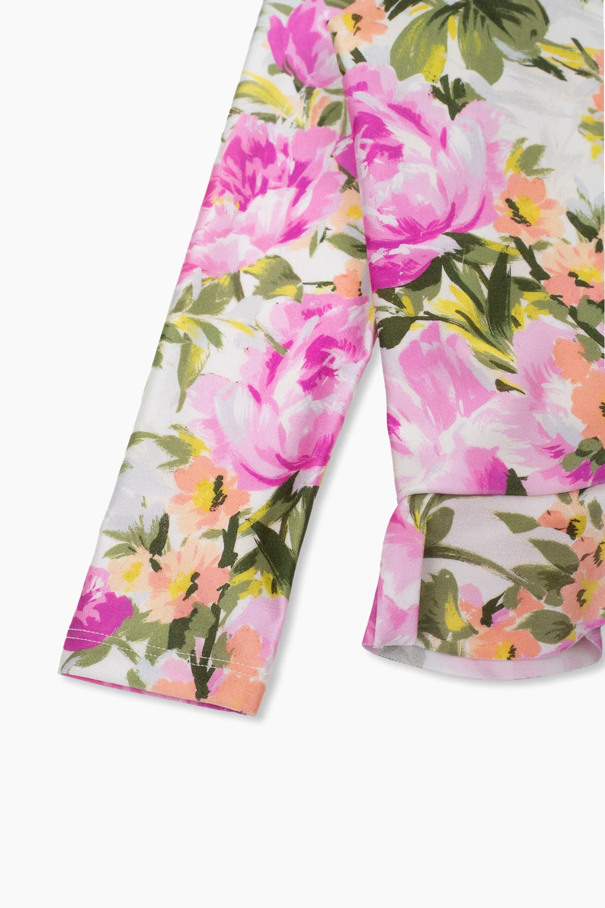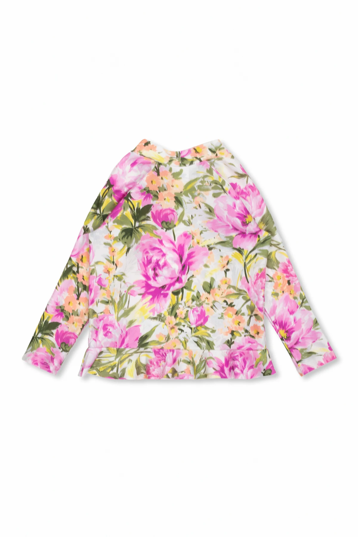 Kolorowy top kąpielowy z długimi rękawami Zimmermann Kids. Ozdobiony dekoracyjnym nadrukiem z motywem kwiatowym. Dekolt ze stójką. Dół zakończony falbaną.