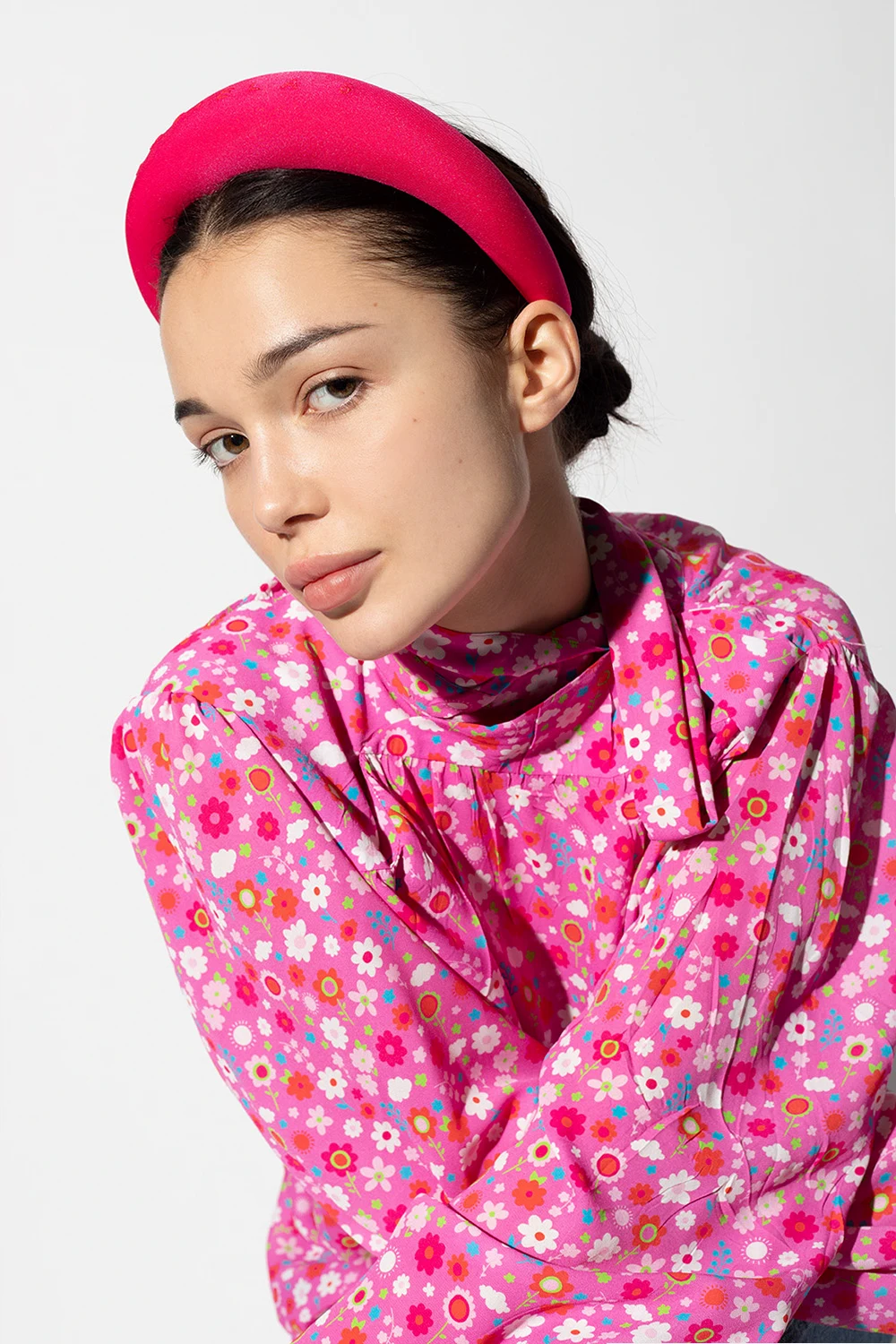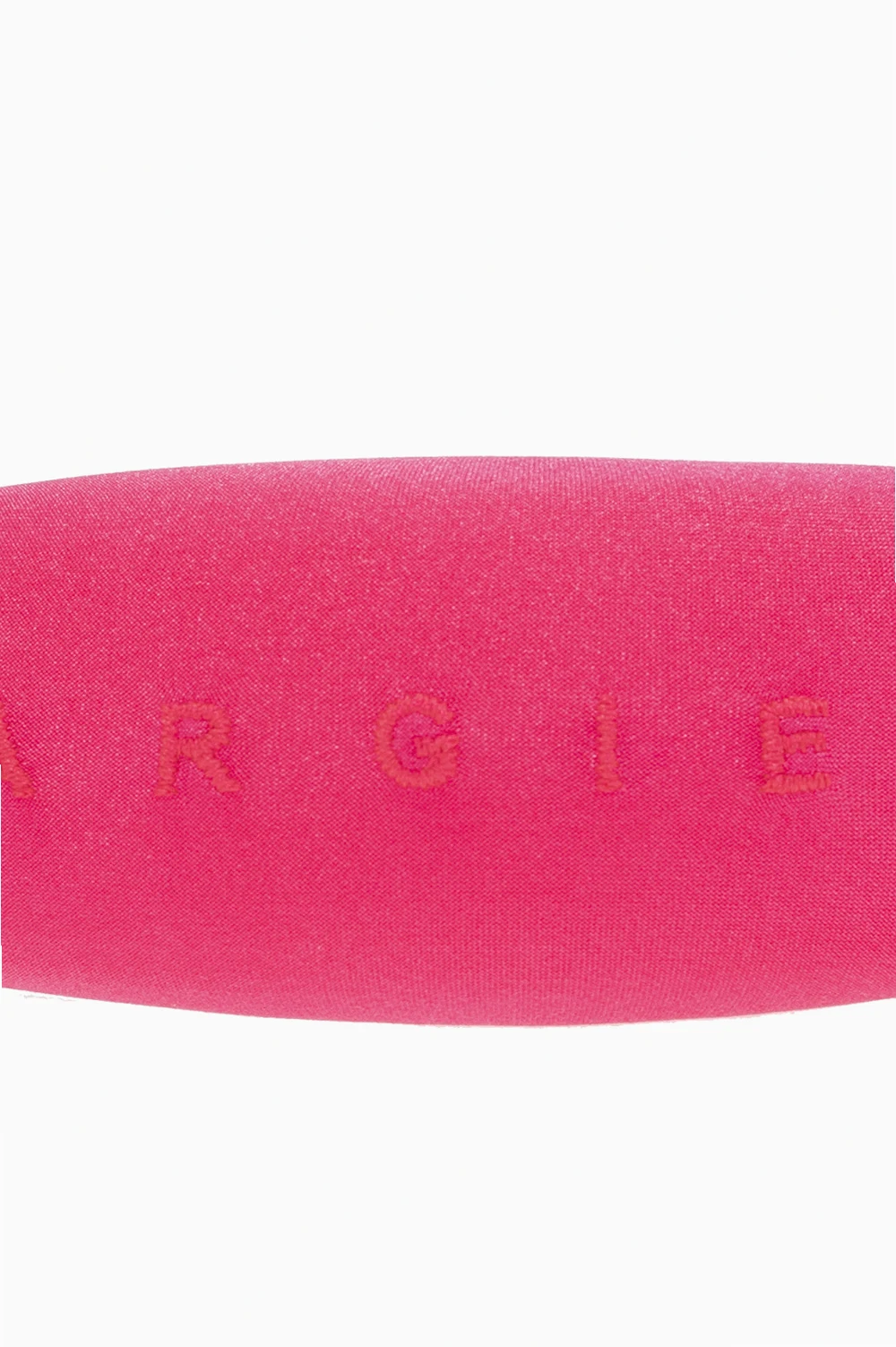 Różowa, neonowa opaska na głowę MM6 Maison Margiela. Ozdobiona wyszytym wzorem z logo.