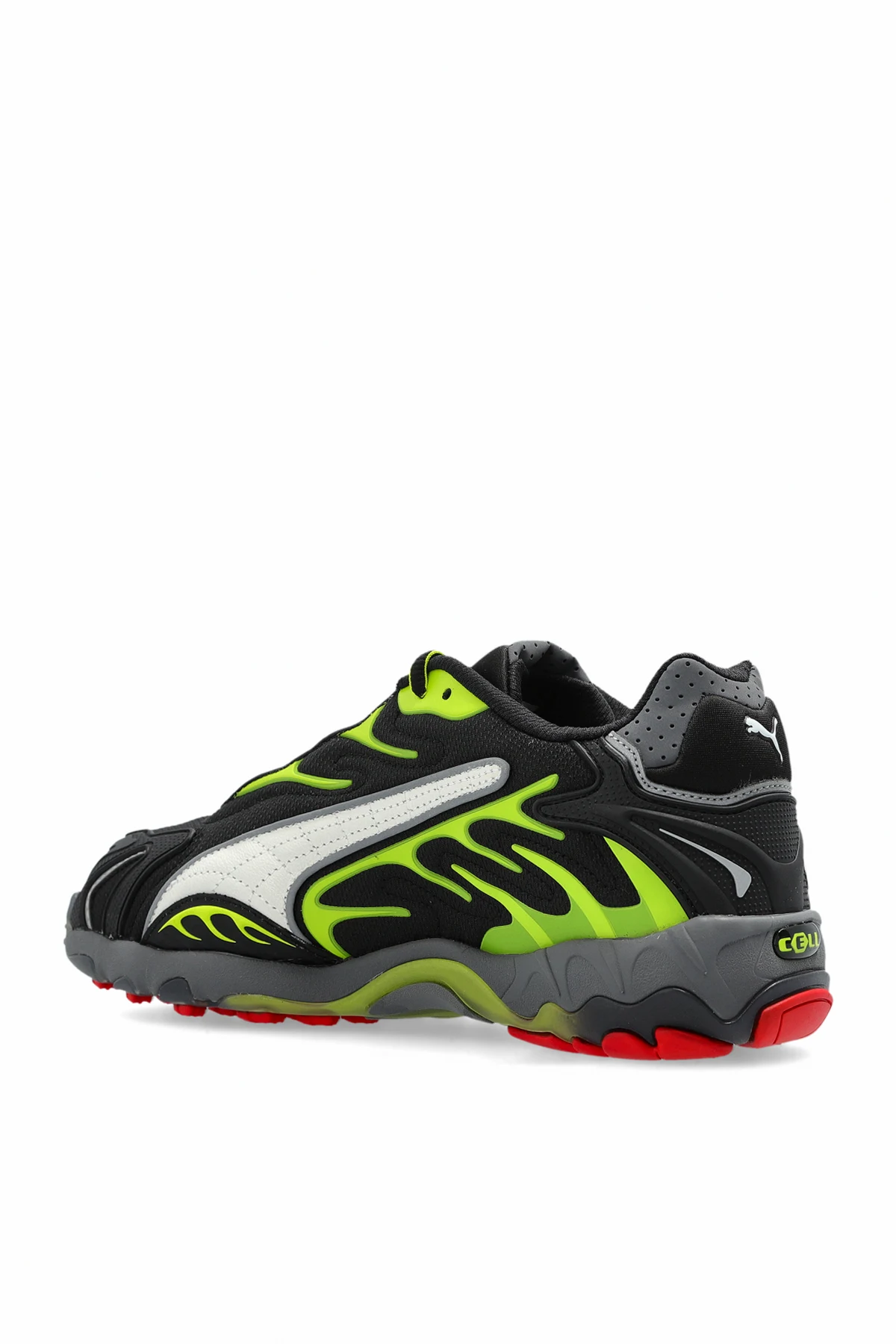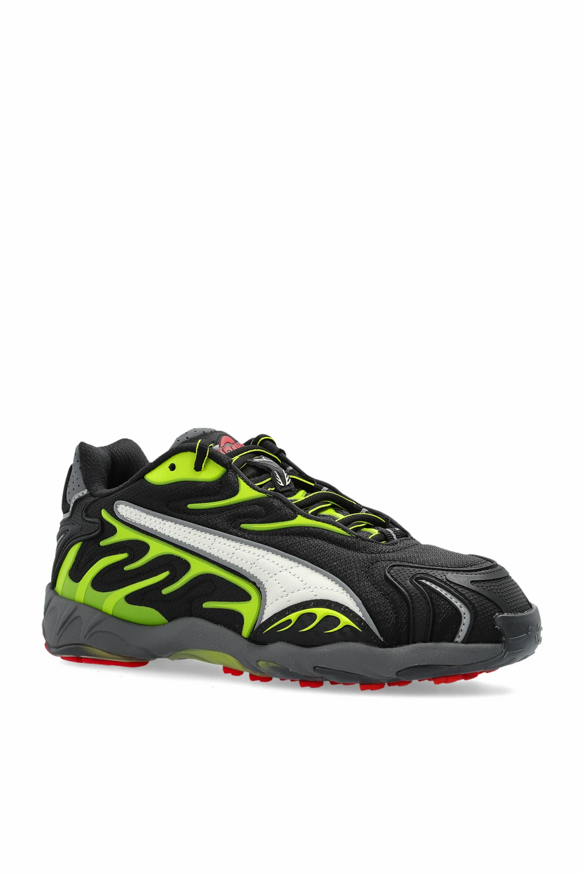 Przedstawiamy unikatowe sneakersy Puma x A$AP Rocky , które łączą w sobie nowoczesny design i dynamiczną estetykę. Wykonane z połączenia wysokiej jakości tkaniny i elementów syntetycznych , oferują niezwykłą wytrzymałość i lekkość. Dominujący czarny kolor został wzbogacony o zielone płomienie oraz białe akcenty, a całość dopełnia czerwony detal na podeszwie.