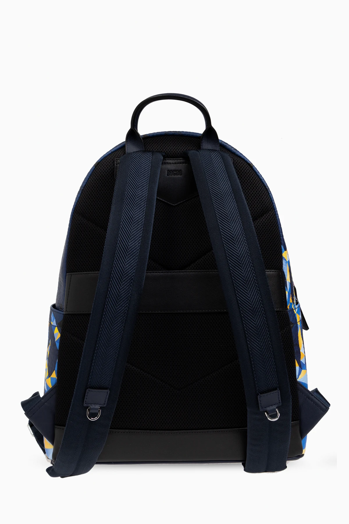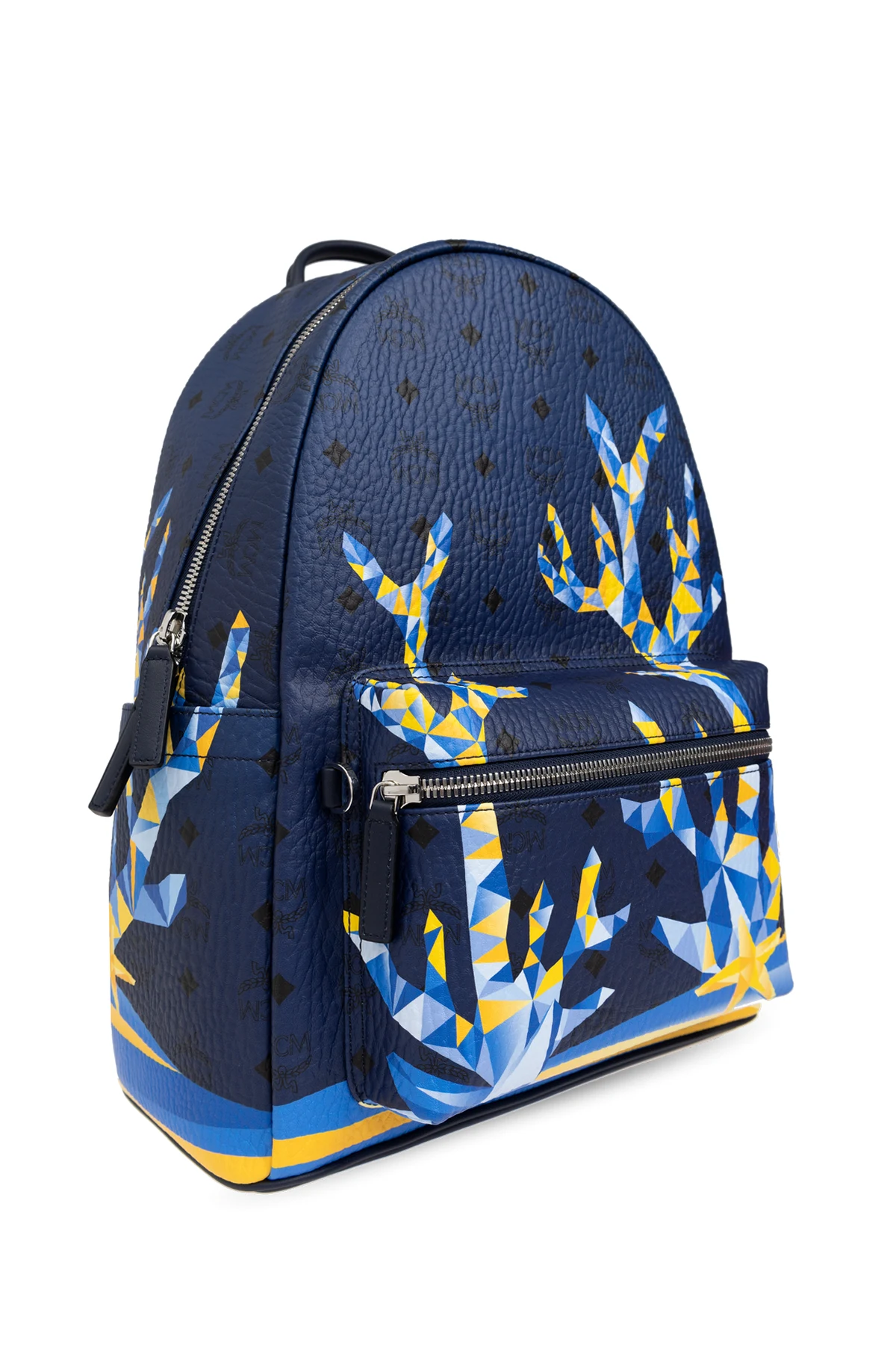 Przedstawiamy Plecak z monogramem z ekskluzywnej kolekcji marki MCM , będący synonimem wyrafinowanej elegancji i funkcjonalności. Dominujący granatowy kolor plecaka został urozmaicony geometrycznym wzorem przywodzącym na myśl gałęzie lub koralowce, utrzymanym w tonacjach niebieskiego, żółtego i białego.