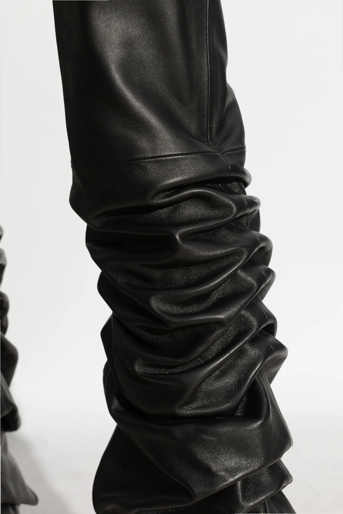 Unikalne marszczone nogawki dodające dramatyzmu.