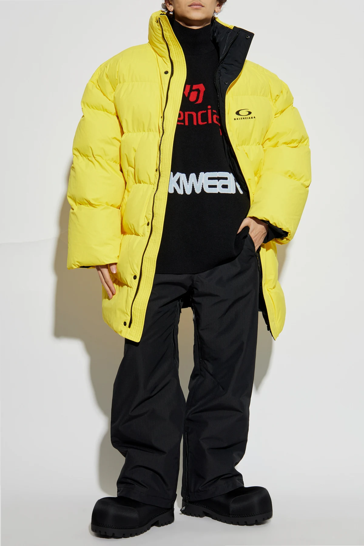 Przedstawiamy ocieplaną kurtkę z prestiżowej kolekcji Skiwear marki Balenciaga. Dominujący intensywny żółty kolor tej kurtki przyciąga spojrzenia, podczas gdy jej puchowa konstrukcja zapewnia ciepło w najzimniejsze dni.