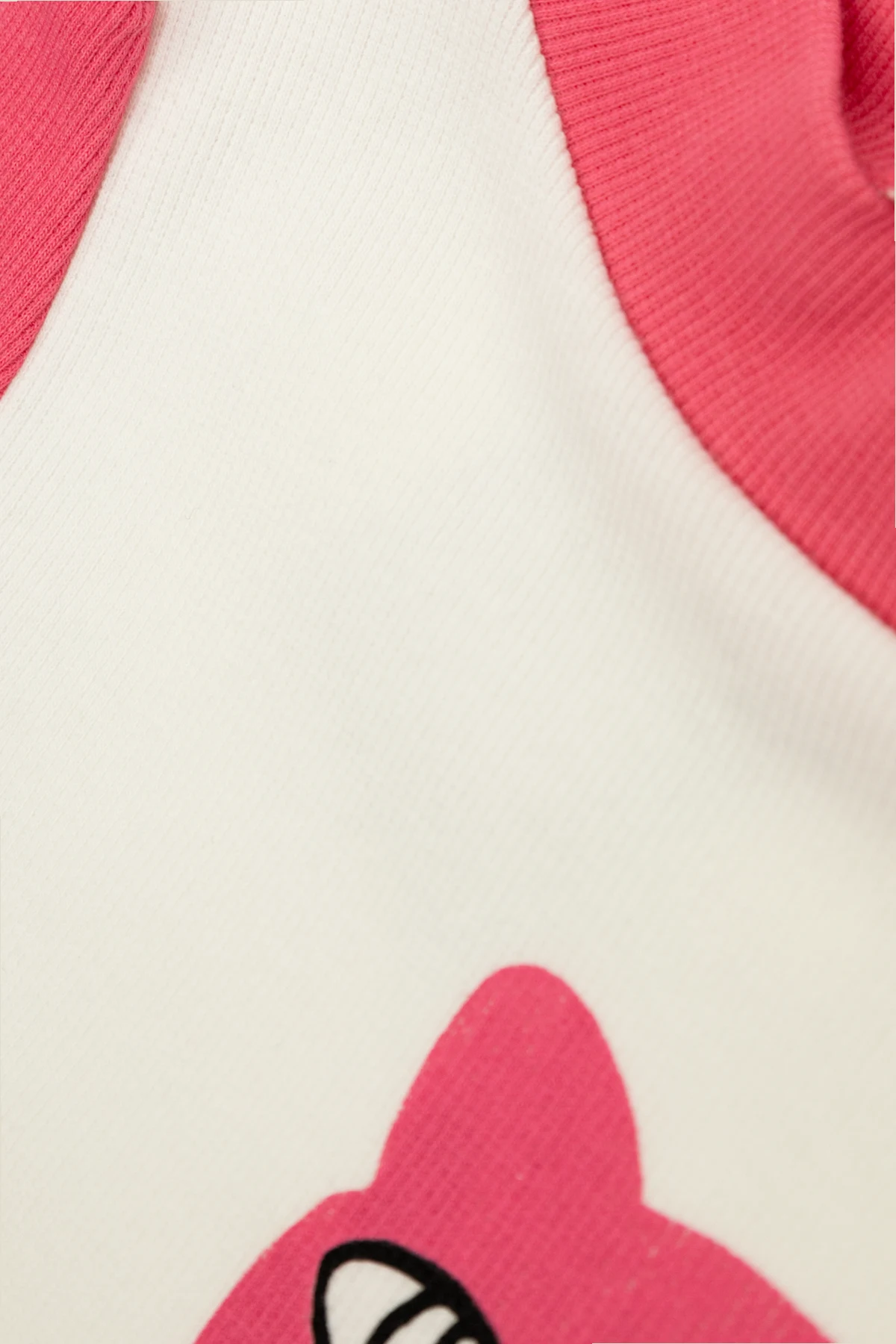 Sukienka z nadrukiem od Mini Rodini to kwintesencja elegancji i wygody w jednym. Zaprojektowana z myślą o najmłodszych, oferuje klasyczny krój w kształcie litery A, który zapewnia swobodę ruchów i komfort noszenia. Długie różowe rękawy kontrastują z białym korpusem, tworząc stylowy i wyrafinowany wygląd.