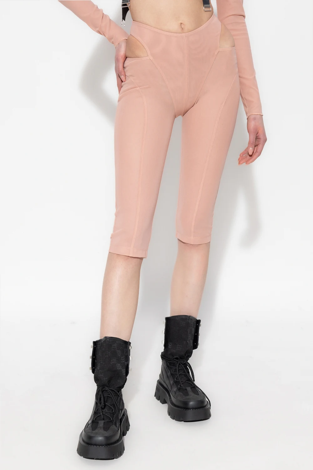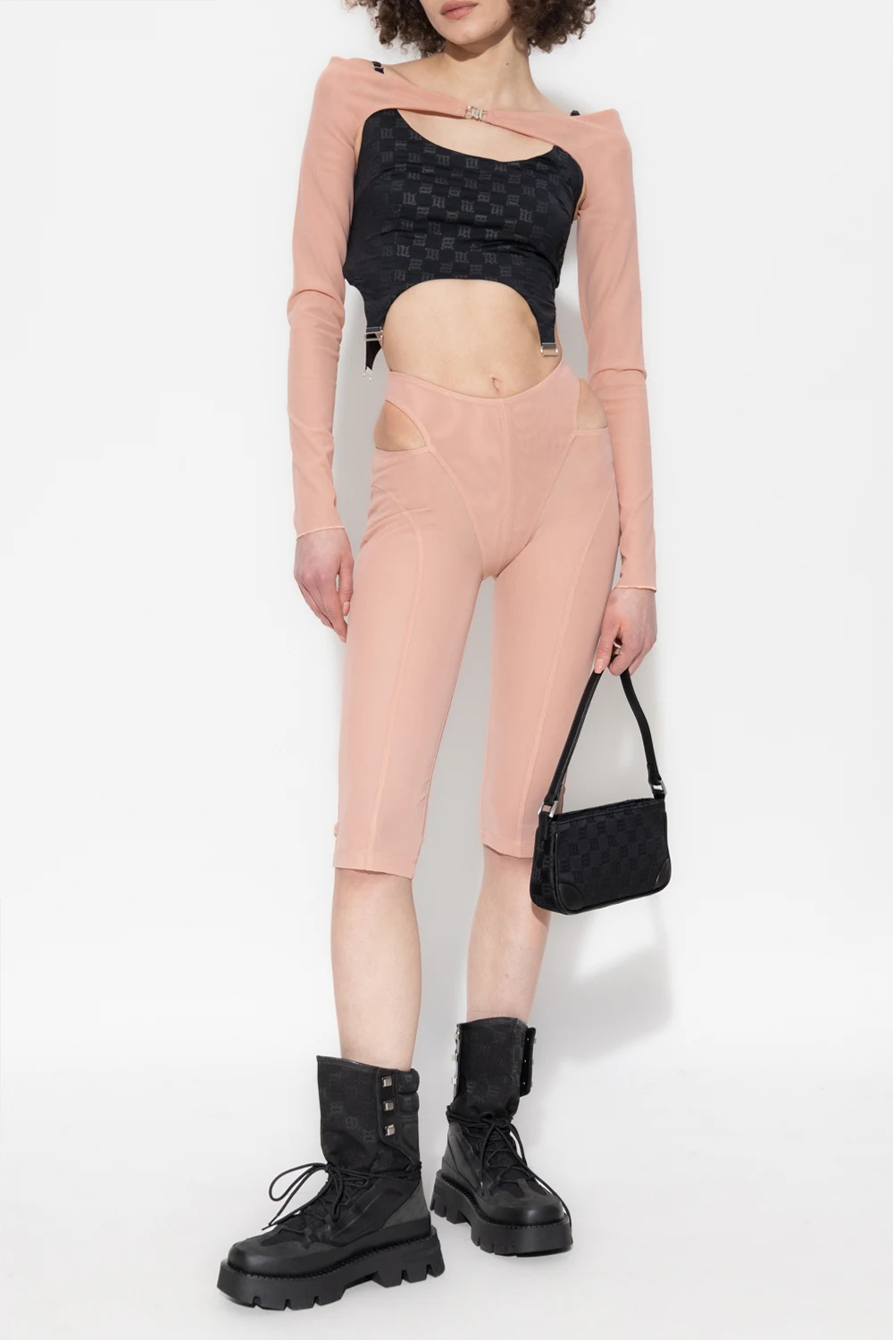 Różowe szorty, model ‘Mesh’ MISBHV, kolekcja ‘Garden Of Dreams’. Z tyłu zapinane na zamek. Dekoracyjne wycięcia.