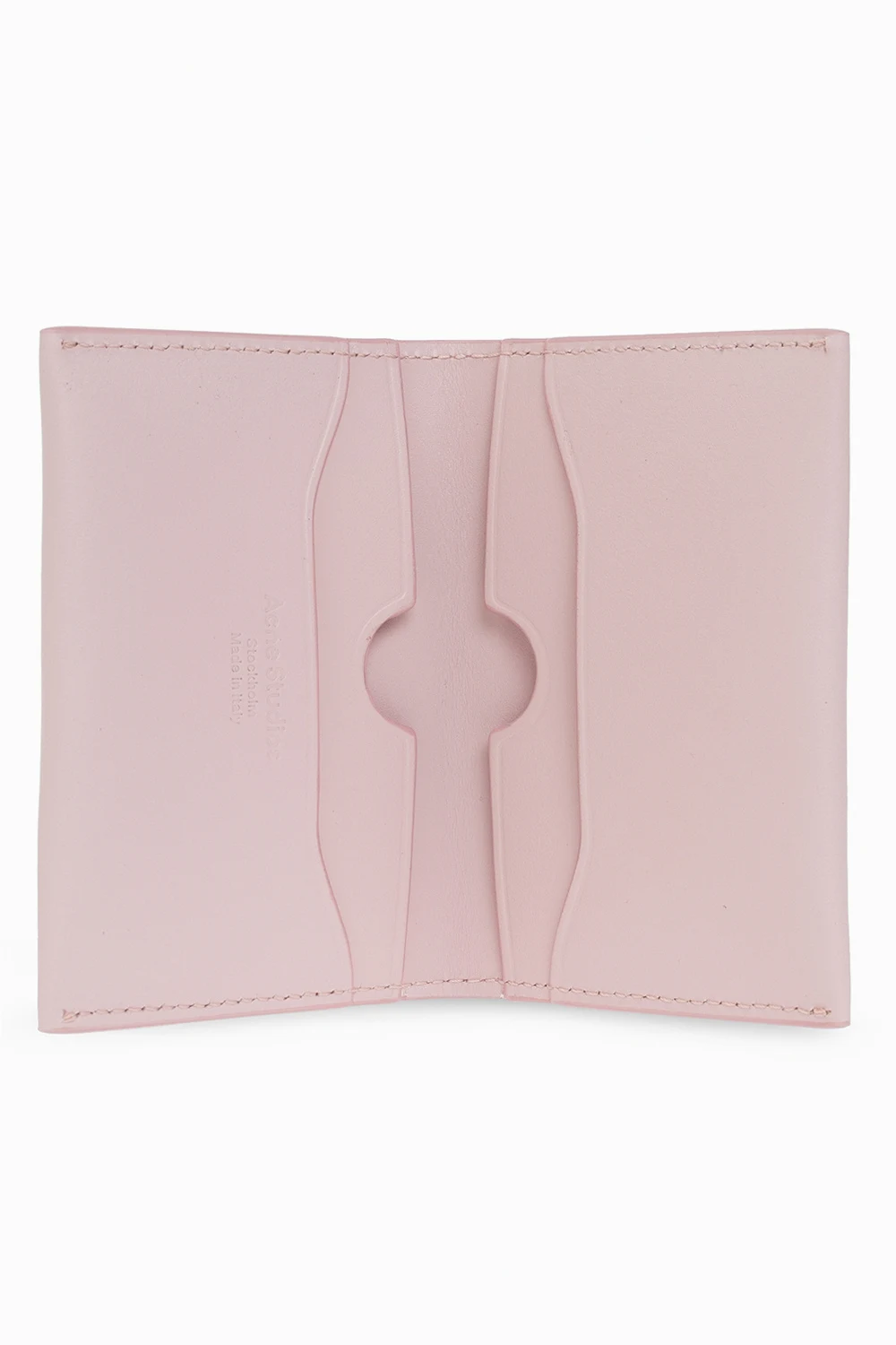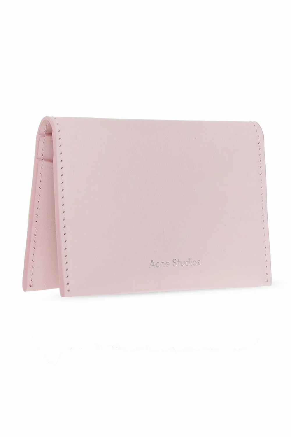 Różowe etui na karty Acne Studios. Wykonane ze skóry. Ozdobione wytłoczonym logo. Wewnątrz cztery miejsca na karty.