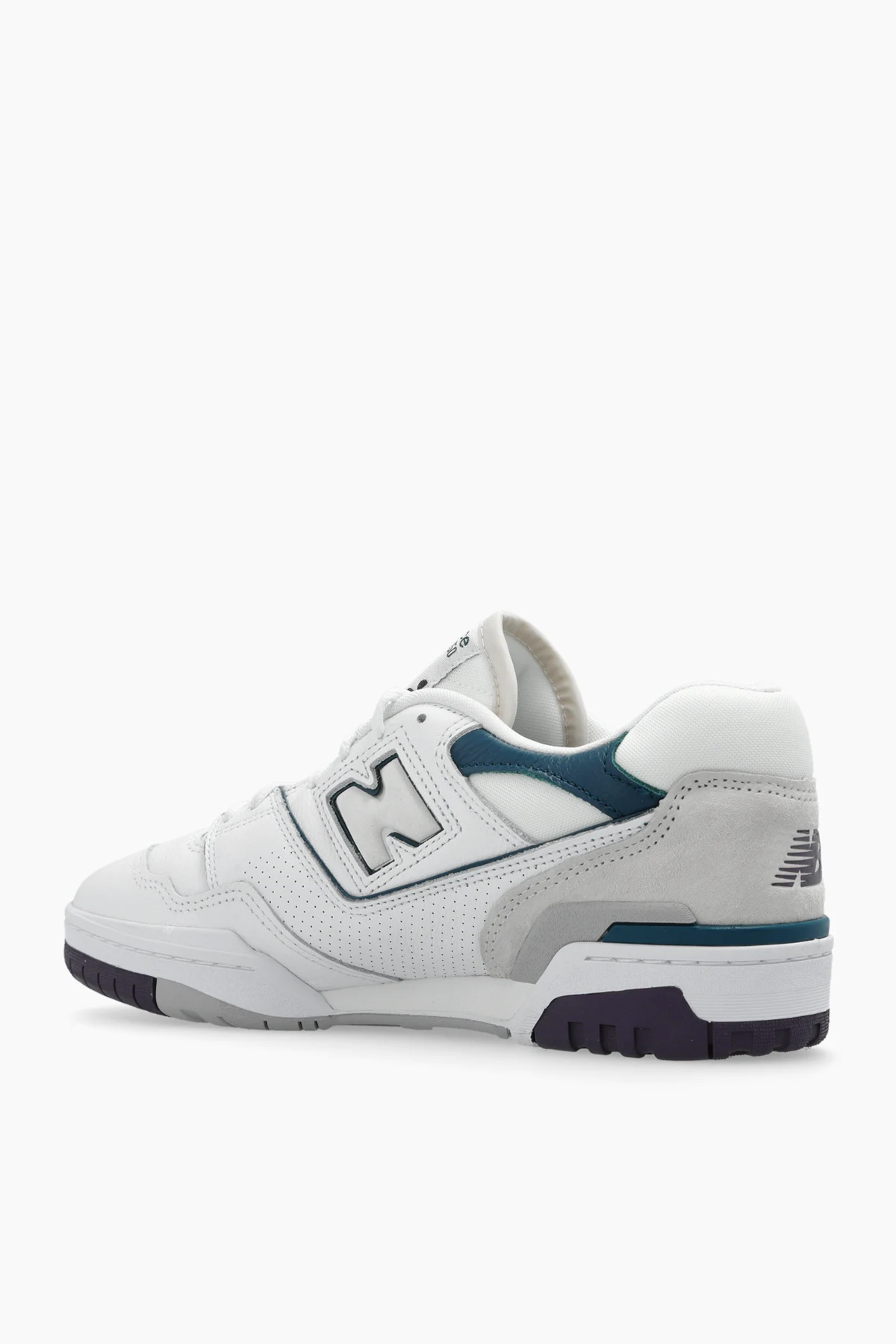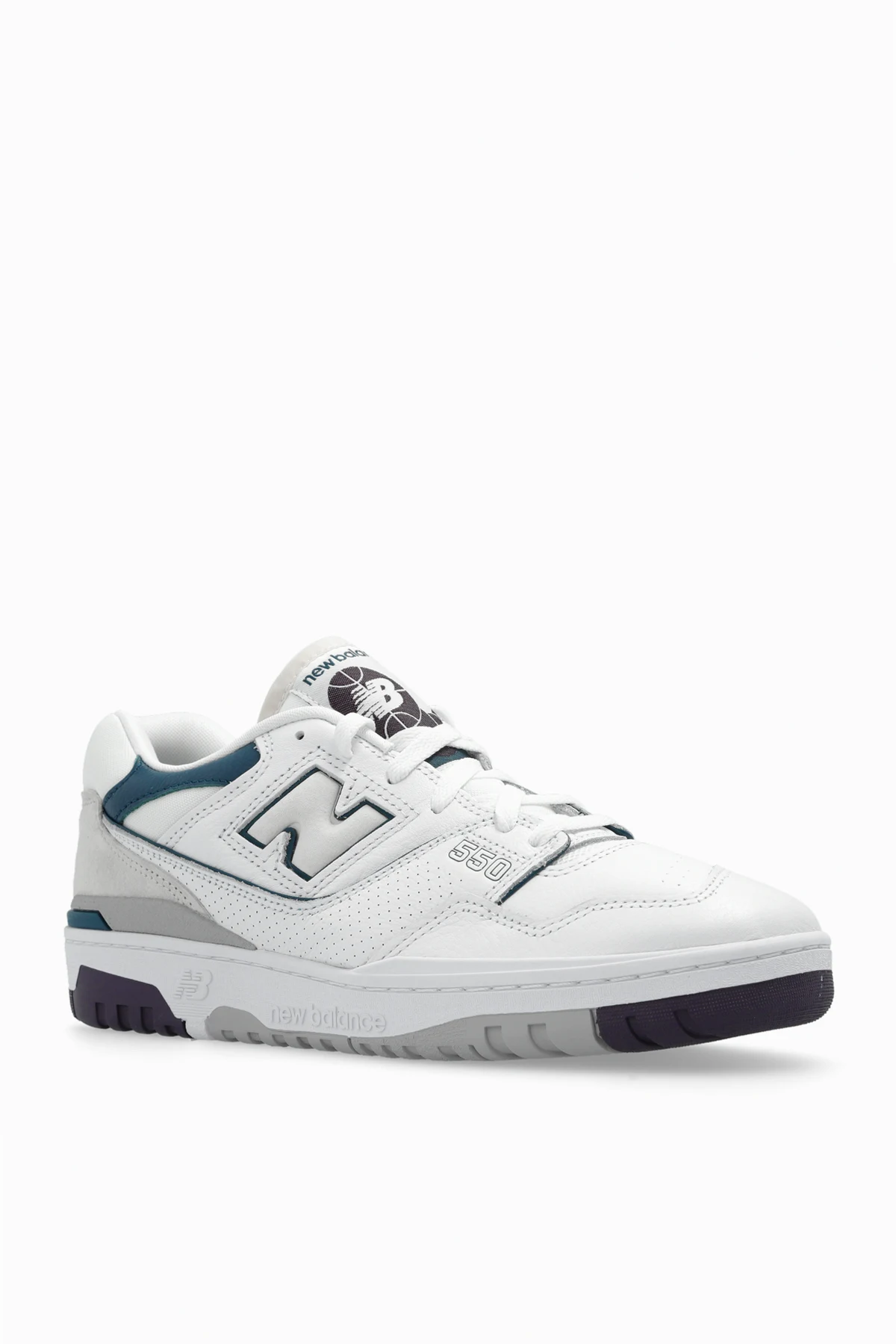Biało-zielono-bordowe, sznurowane buty sportowe, model ‘BB550WCB’ New Balance. Wykonane ze skóry. Ozdobione aplikacją z logo oraz oznaczeniem serii modelu. Biało-szaro-bordowa, gumowa podeszwa.