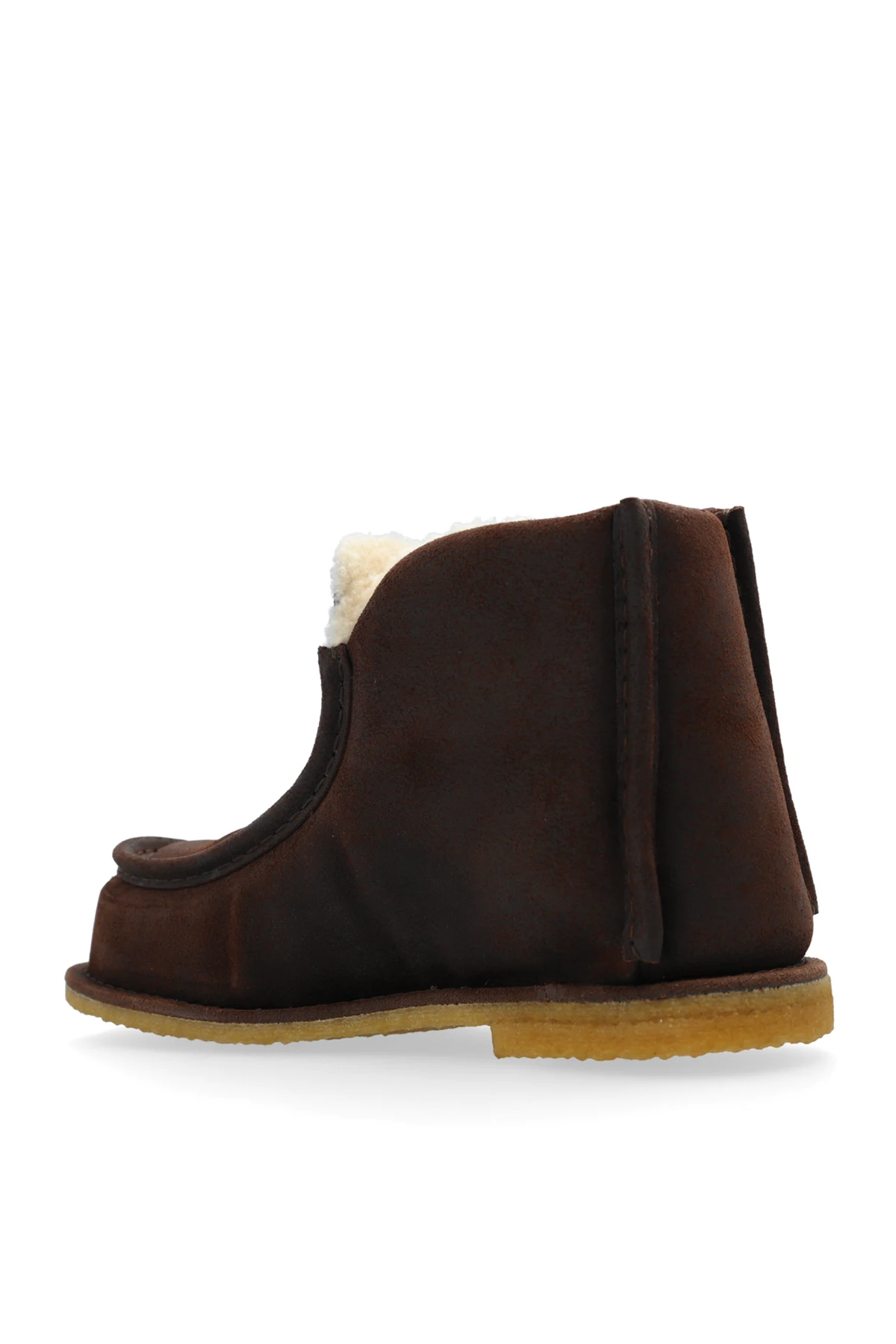 Przedstawiamy śniegowce za kostkę z ekskluzywnej kolekcji JW Anderson – kwintesencję elegancji i funkcjonalności. Te brązowe śniegowce, wykonane z najwyższej jakości skóry, urzekają prostym, lecz wysublimowanym designem, zapewniając jednocześnie ochronę przed zimnem dzięki wyściełanemu miękkim futerkiem wnętrzu.