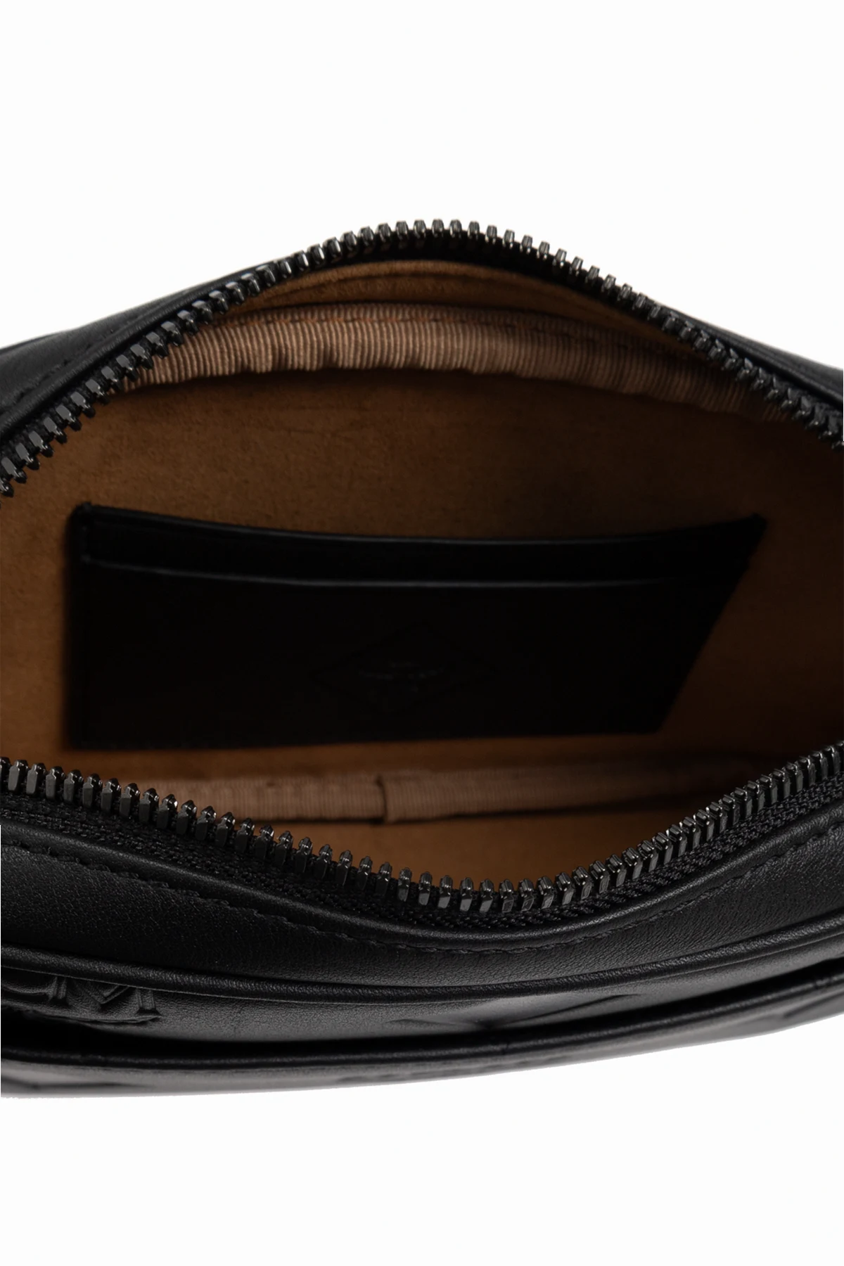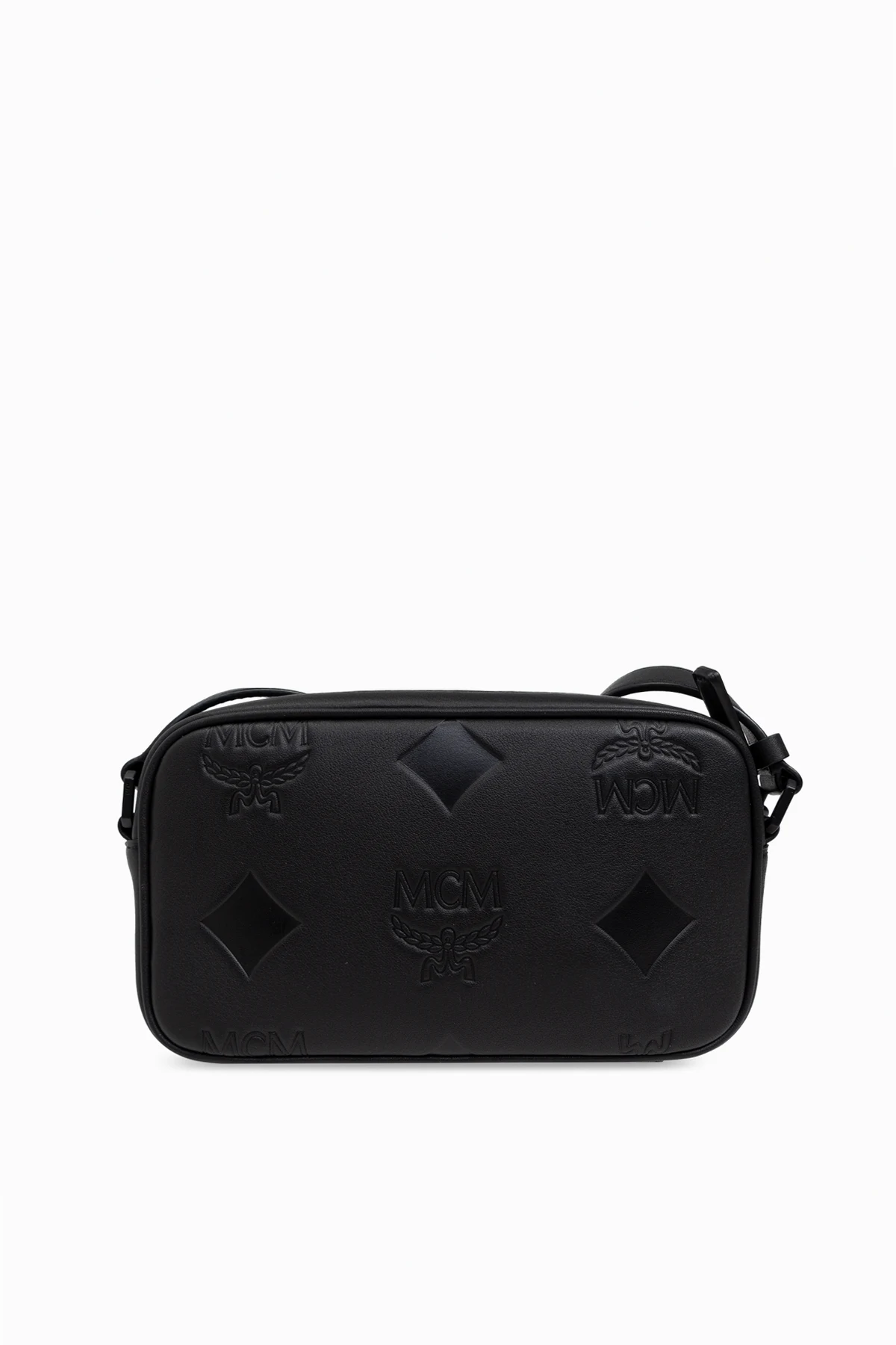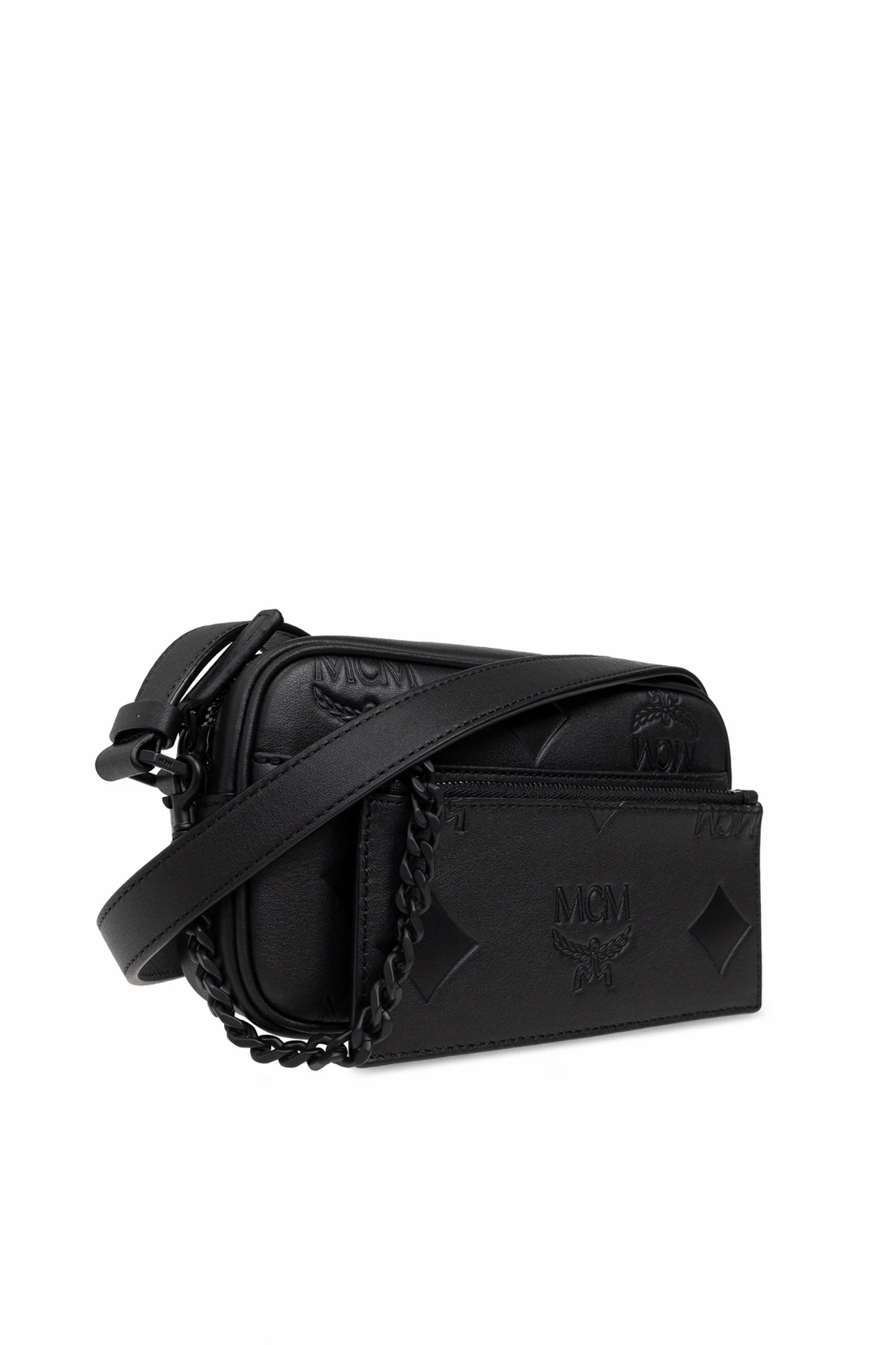 Wykonana z gładkiej skóry, torba ozdobiona jest wytłaczanym logo "MCM" oraz geometrycznymi wzorami, które podkreślają luksusowy charakter produktu. Regulowany pasek zapewnia komfort noszenia, a bezpieczne zapięcie na zamek błyskawiczny chroni cenne przedmioty. Wewnątrz znajduje się praktyczna kieszeń na drobiazgi, wykończona kontrastującym materiałem, oraz komora z dwoma miejscami na karty.