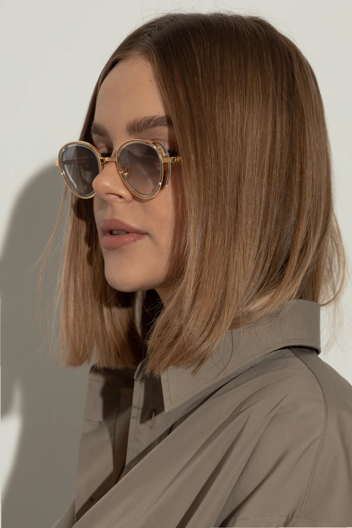 Wykonane w całości z metalu, okulary emanują trwałością i wysoką jakością. Ich złote ramki, ozdobione subtelnymi detalami, przyciągają wzrok i dodają elegancji każdej stylizacji. Delikatny gradient na soczewkach to nie tylko element stylowy, ale także zapewnienie ochrony przed słońcem.