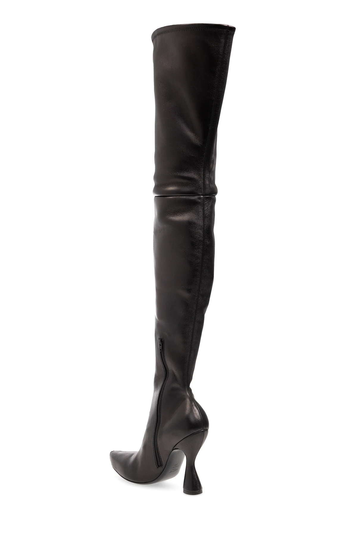 Czarne kozaki na obcasie Lanvin. Wykonane ze skóry. Z boku zapięcie na zamek. Nosek w szpic. Czarna, skórzana podeszwa.