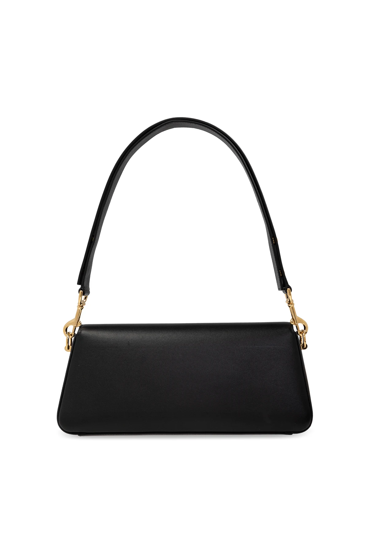 Na froncie torby znajduje się subtelny, złoty element dekoracyjny z wygrawerowaną nazwą projektanta, który podkreśla unikatowość produktu. Złote okucia przy mocowaniach paska dodają jej luksusowego charakteru. Torba zamykana jest na magnetyczne zapięcie, co zapewnia szybki i wygodny dostęp do zawartości.