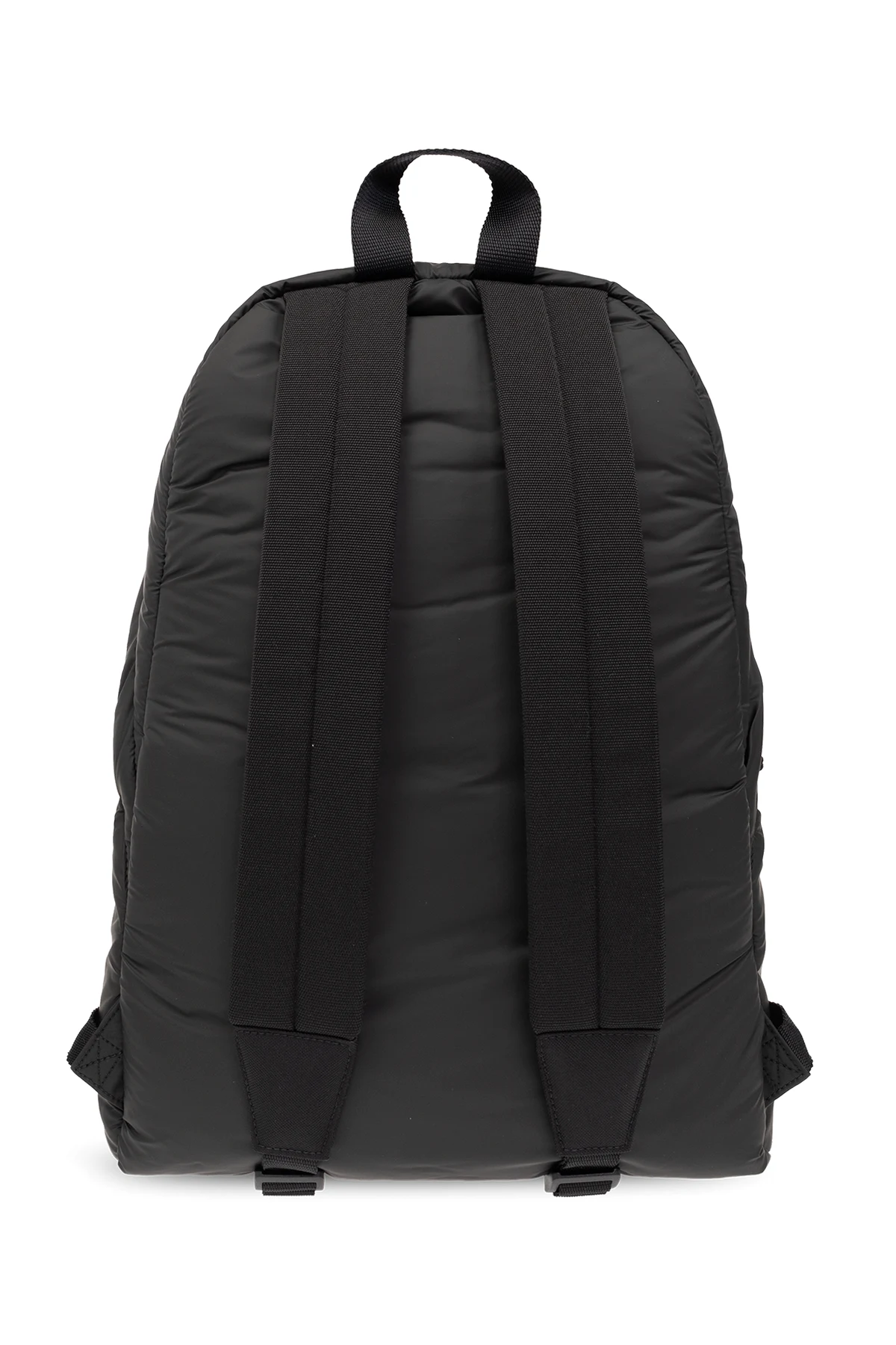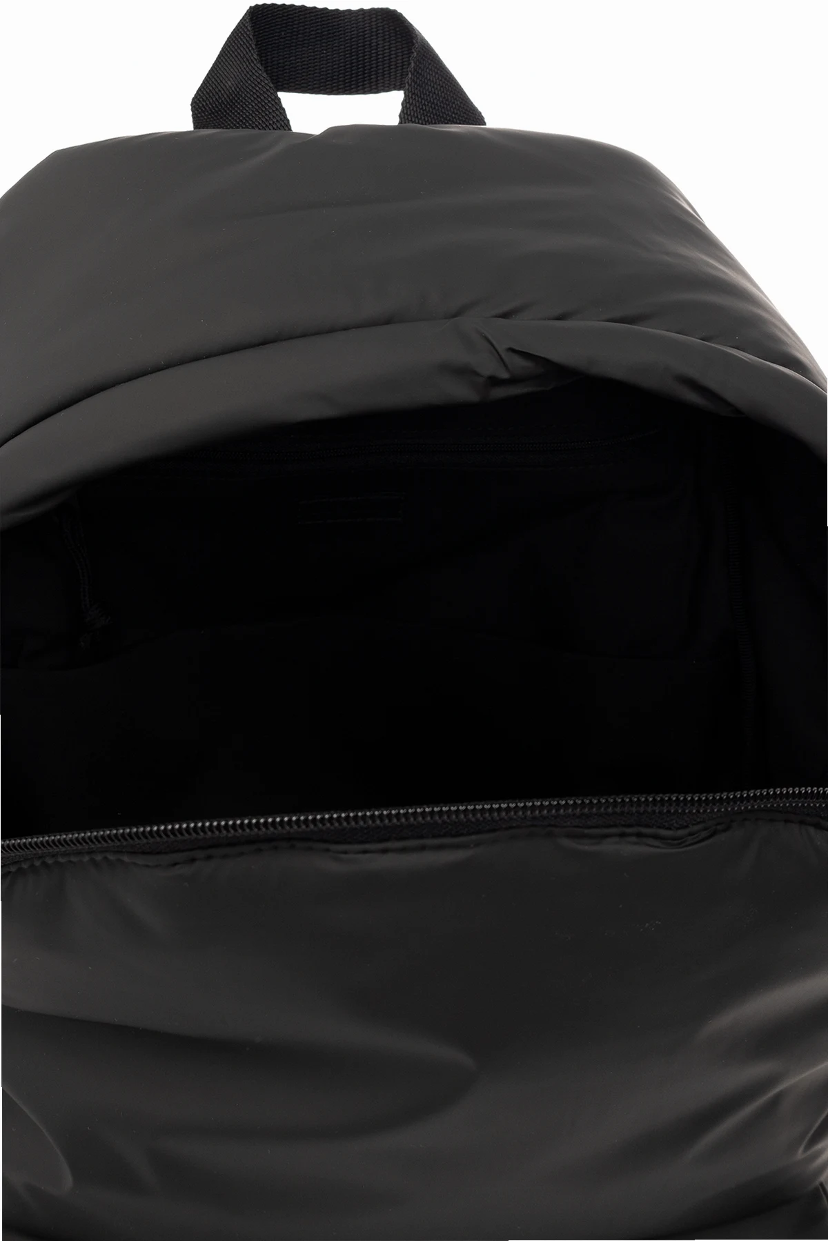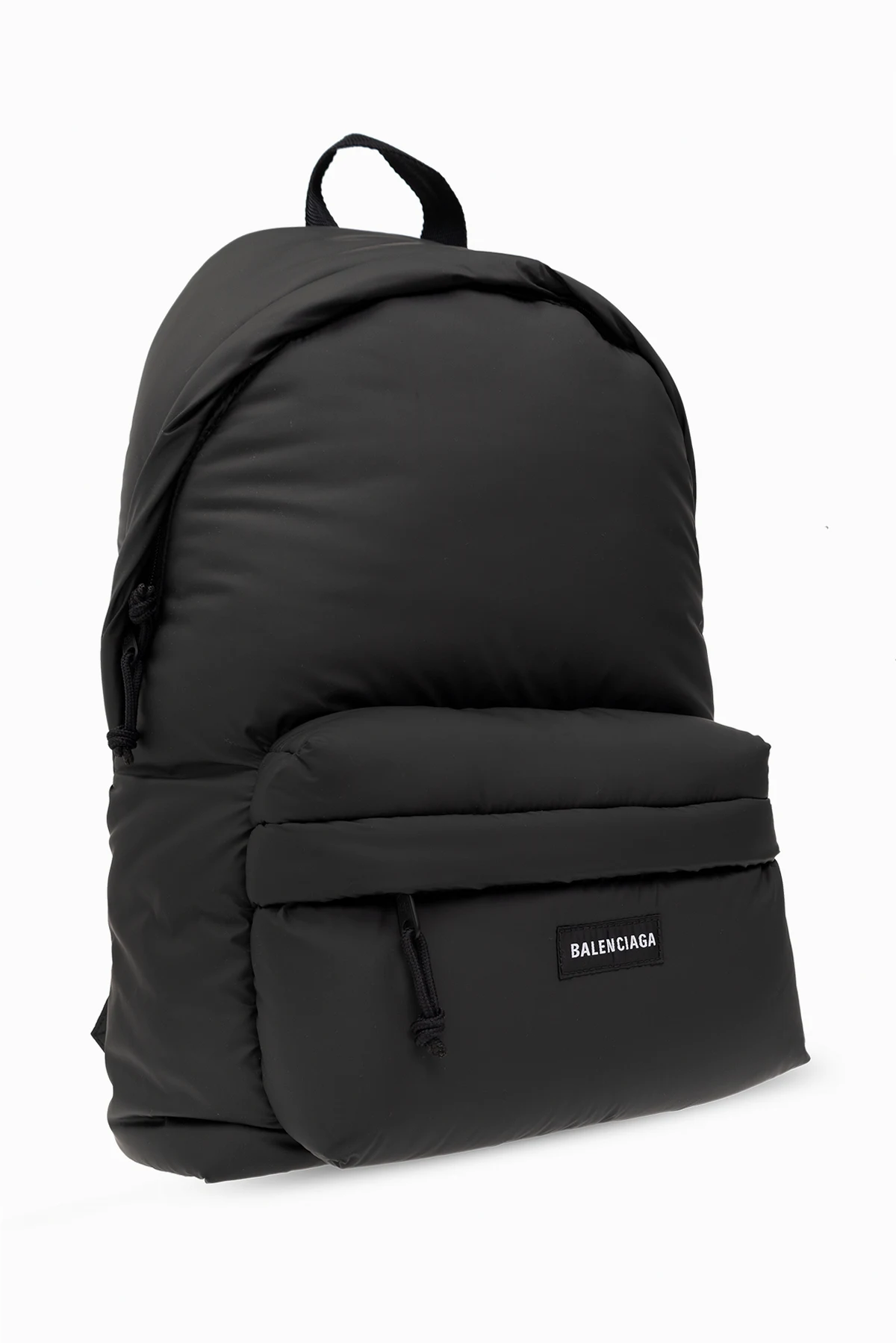 Czarny plecak, model 'Explorer' Balenciaga. Wykonany z materiału o matowym wykończeniu. Zamykany na dwubiegunowy zamek. Ozdobiony naszywką z logo. Z przodu kieszeń z zamknięciem na zamek. Półokrągła rączka. Dwa regulowane pasy. Wewnątrz komora oraz kieszeń zamykana na zamek. Metalowe elementy w kolorze czarnym.