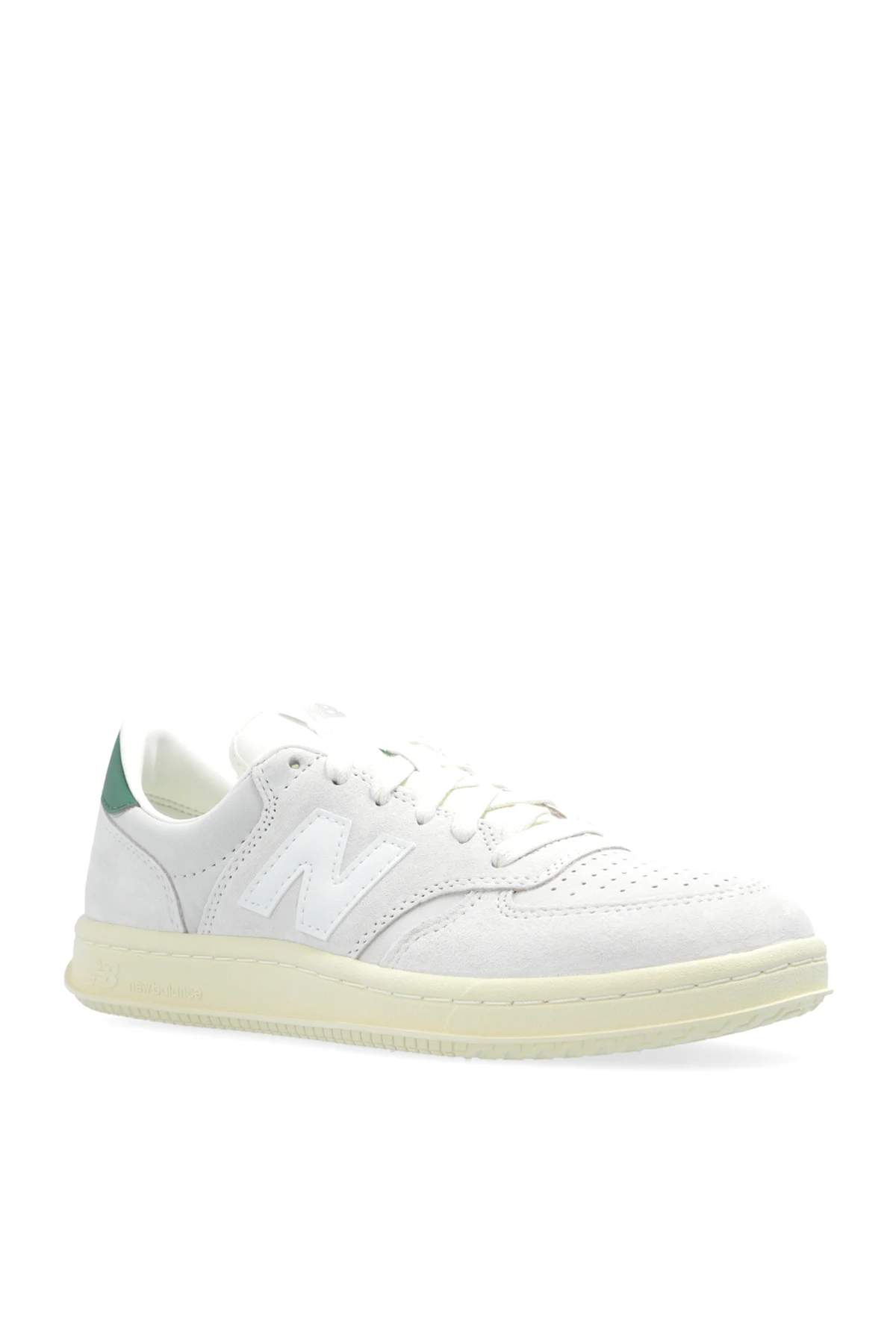 Wzornictwo butów CT500GRN przyciąga wzrok dzięki kremowej kolorystyce z zielonymi akcentami na pięcie. Duże, białe logo "N" na bocznej cholewce oraz zielone napisy "New Balance" na pięcie i języku dodają butom unikalnego stylu. Dodatkowo, perforacje na przodzie buta zapewniają lepszą wentylację.