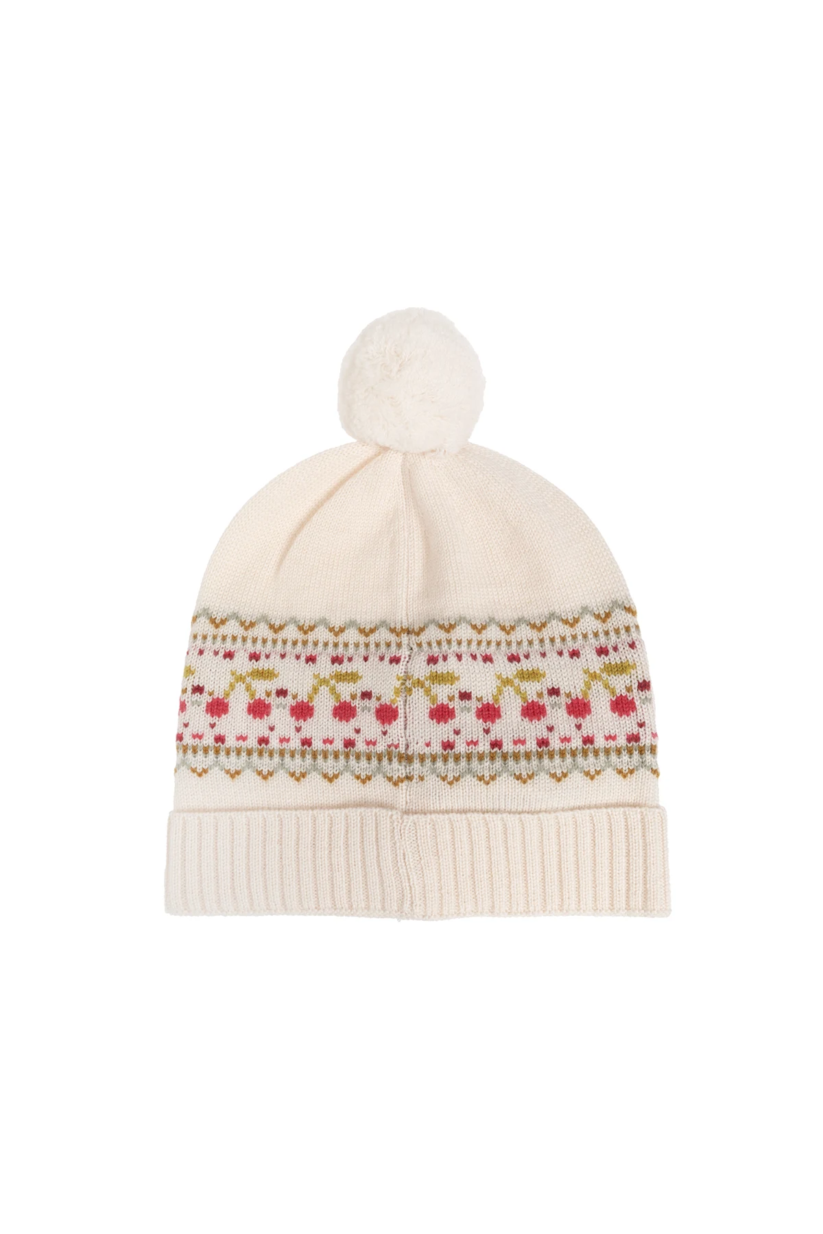 Detale wykończenia, takie jak gładki, wywinięty brzeg z wyraźnym, pionowym prążkowaniem, dodają czapce struktury i elegancji. Wzór czapki jest symetryczny i powtarzalny, podkreślając dbałość o szczegóły, która jest znakiem rozpoznawczym marki Bonpoint .