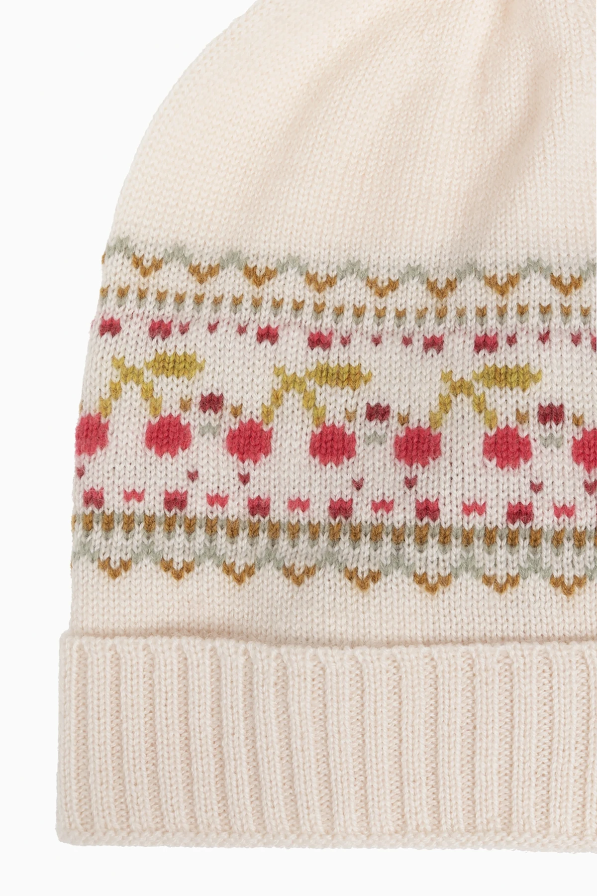 Ozdobny, kolorowy wzór dodaje czapce unikalnego charakteru.
