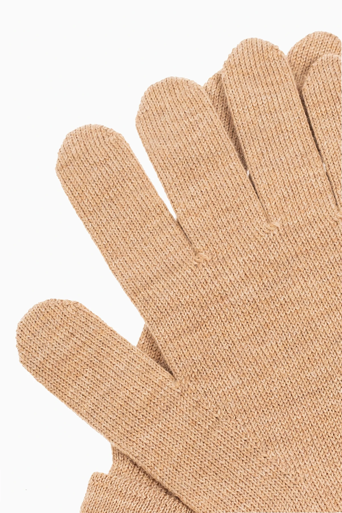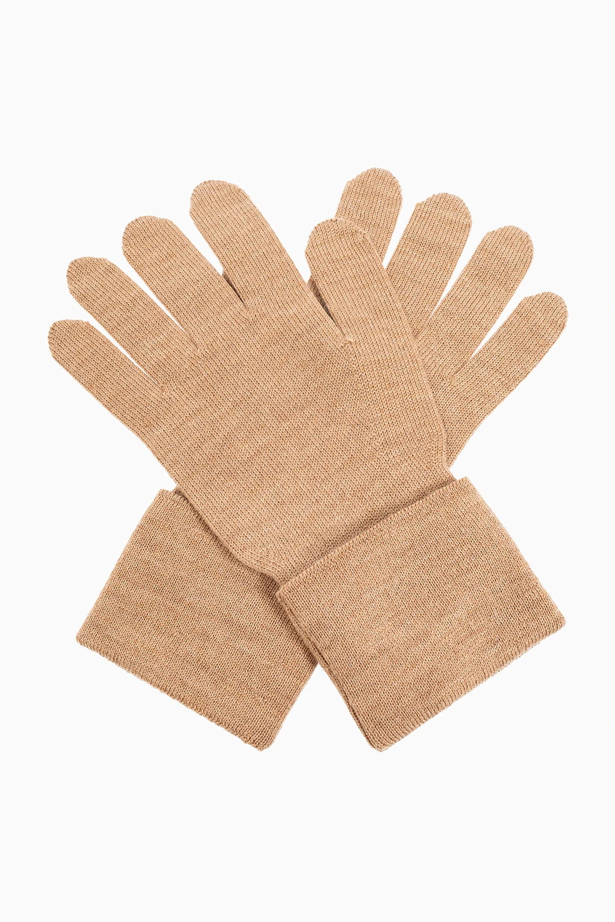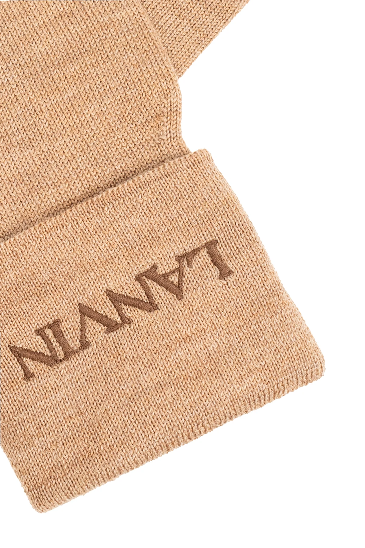 Beżowe rękawiczki Lanvin. Wykonane z wełny. Wykończone ściągaczem ozdobionym wyszytym logo.