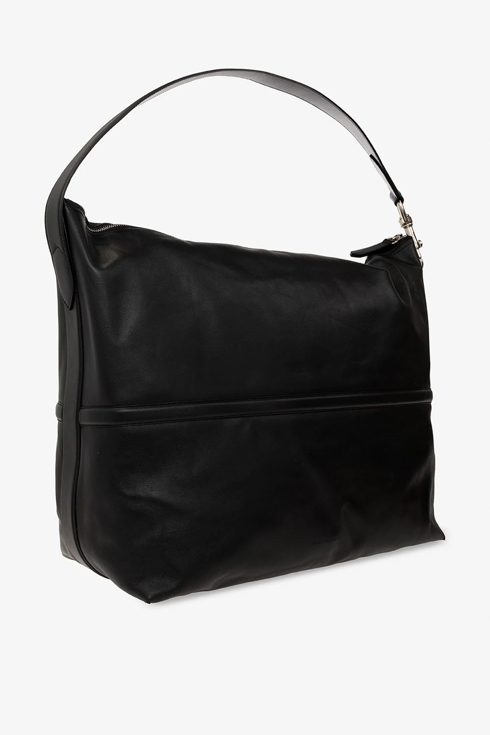 Czarna torba na ramię Dries Van Noten. Wykonana ze skóry. Zamykana na zamek. Z przodu ozdobiona wytłoczonym logo. Regulowany pasek. Wewnątrz komora i wsuwana kieszeń. Metalowe elementy w kolorze srebrnym.