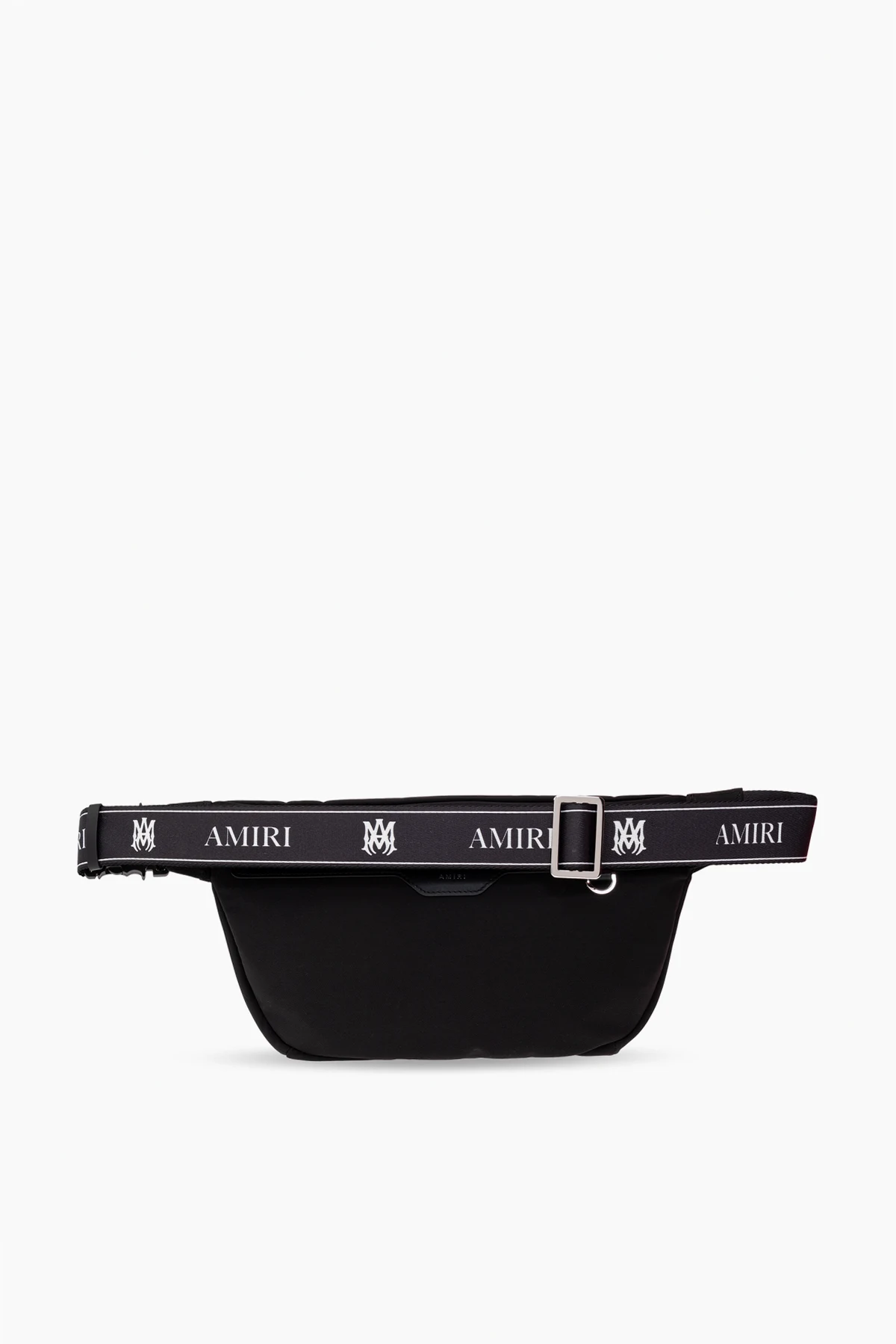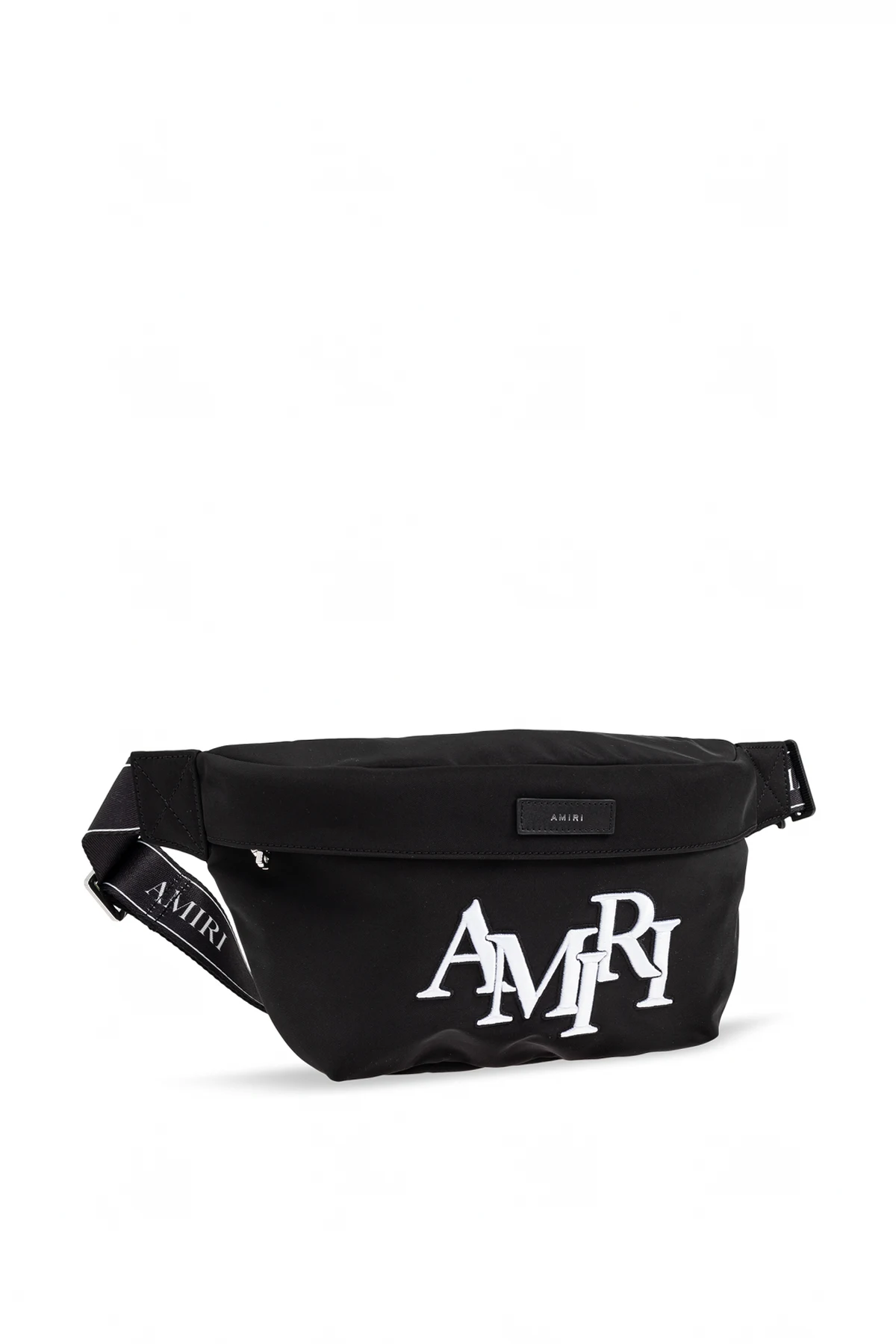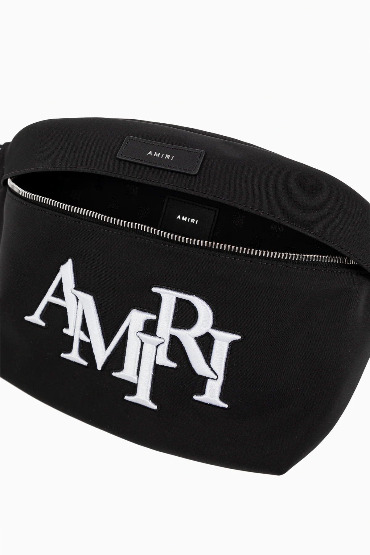 Na przedniej części torby umieszczono duże, białe logo "AMIRI", które dodaje jej wyrafinowanego charakteru. Pasek torby zdobią napisy i symbole marki, podkreślając jej prestiż. Dodatkowym elementem jest mała naszywka z logo na górze, która w subtelny sposób dopełnia całość.