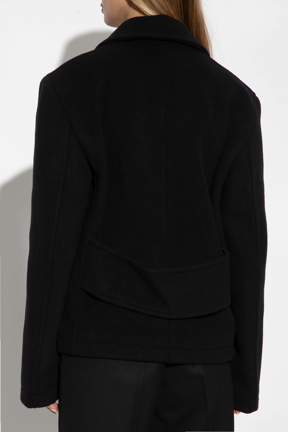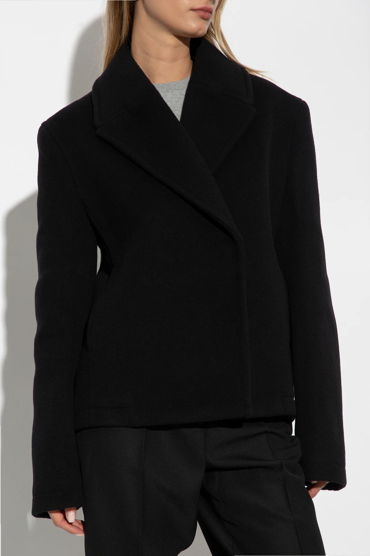 Przedstawiamy wełnianą kurtkę z ekskluzywnej kolekcji odzieżowej marki TOTEME . Ta czarna kurtka, wykonana z wysokiej jakości wełny, jest kwintesencją minimalistycznej elegancji i wszechstronności.