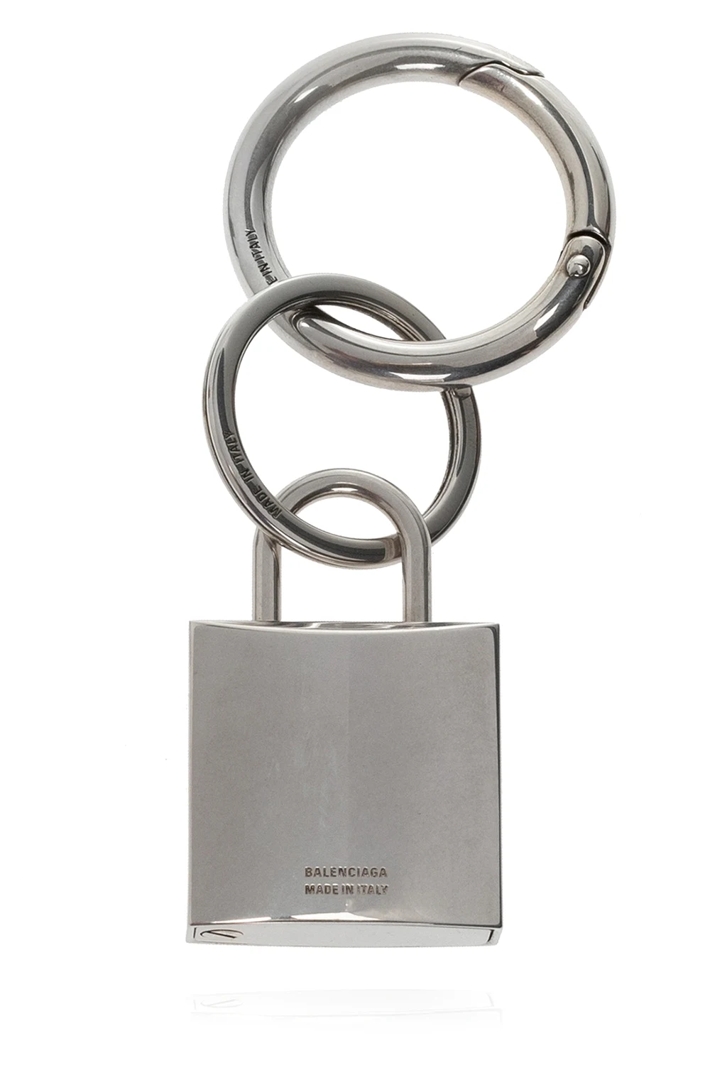 Metalowy brelok w kolorze srebrnym Balenciaga. Ozdobiony kłódką z wypukłym logo.