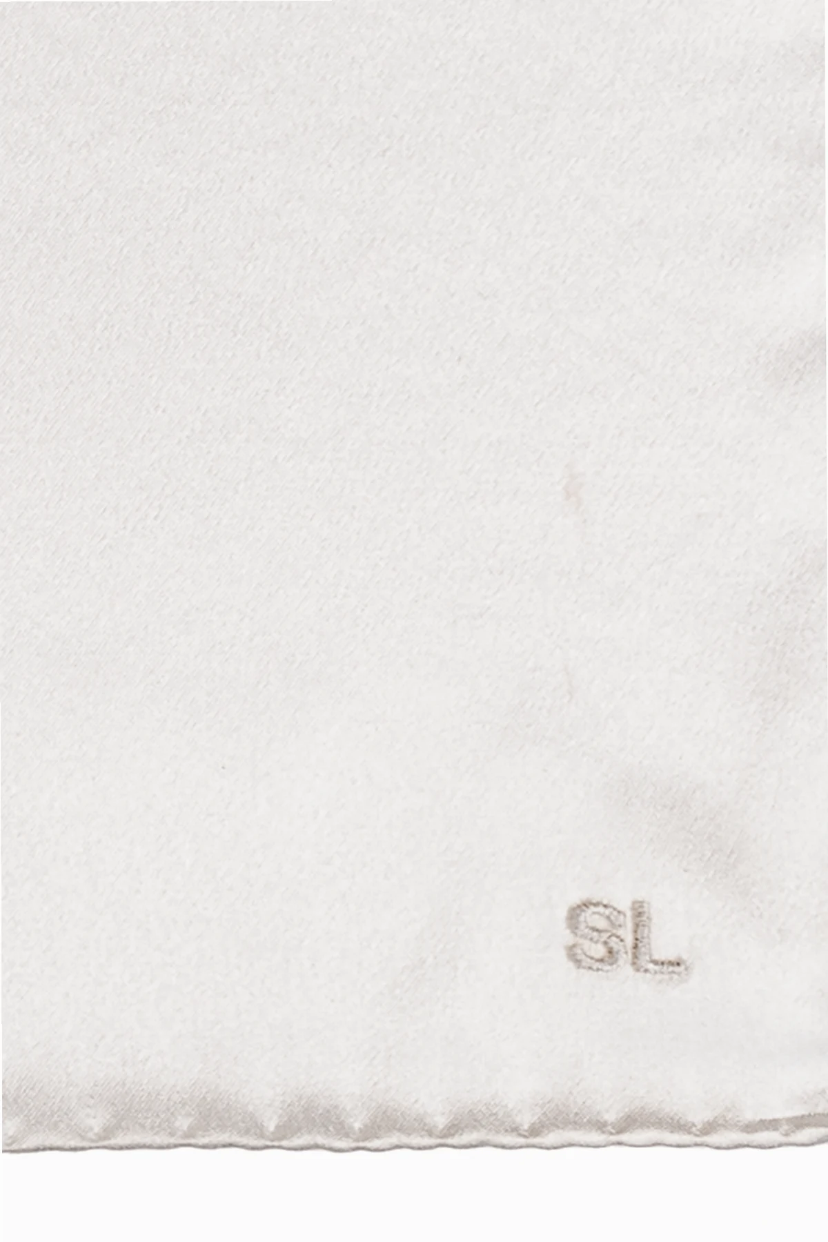 Biała poszetka Saint Laurent. Wykonana z jedwabiu. Ozdobiona wyhaftowanym logo.
