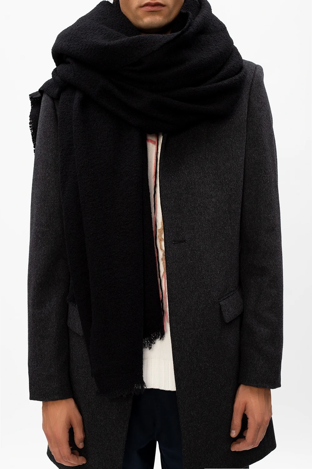 Czarny szalik Rick Owens. Ozdobiony dekoracyjnym przeszyciem. Surowe wykończenie.