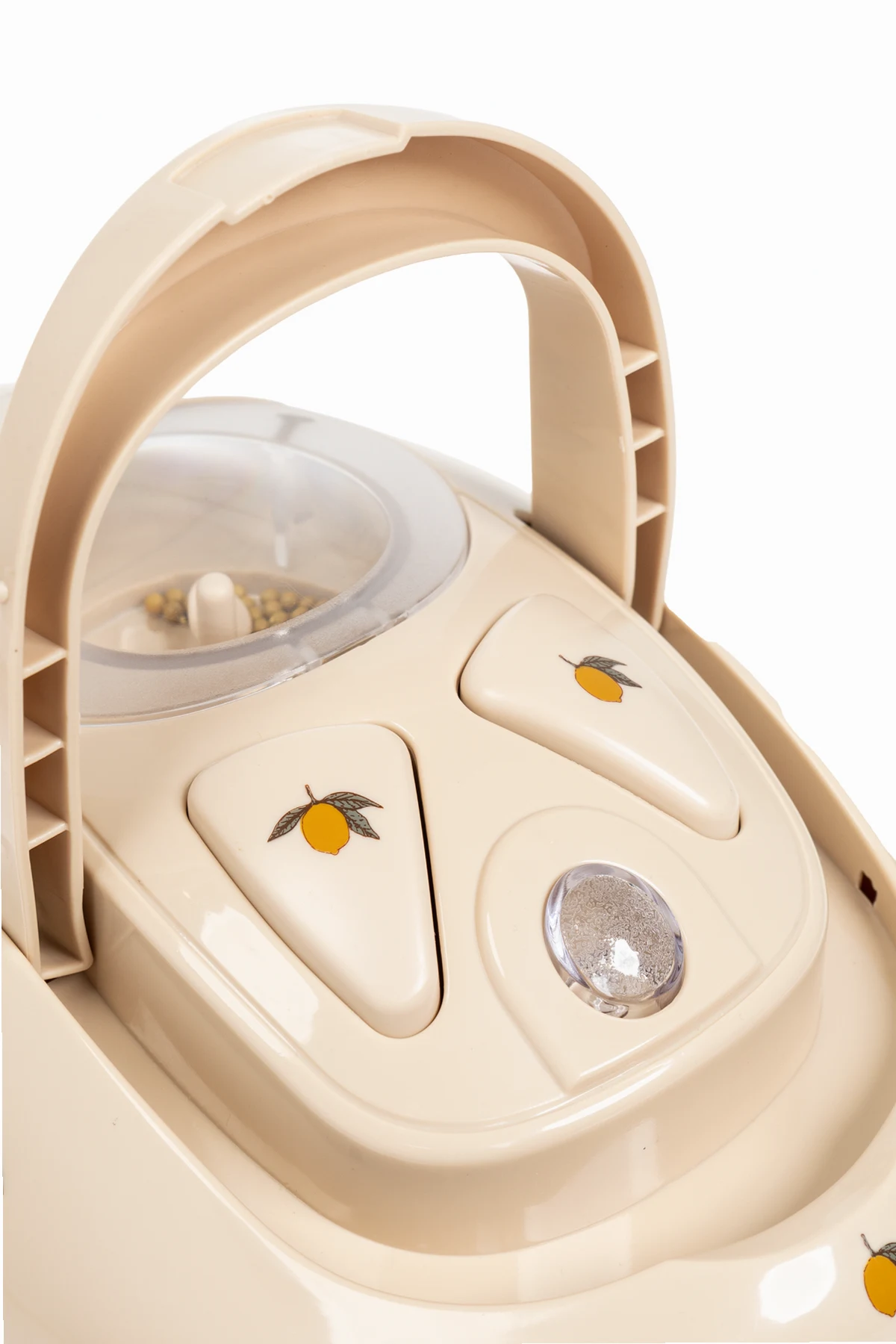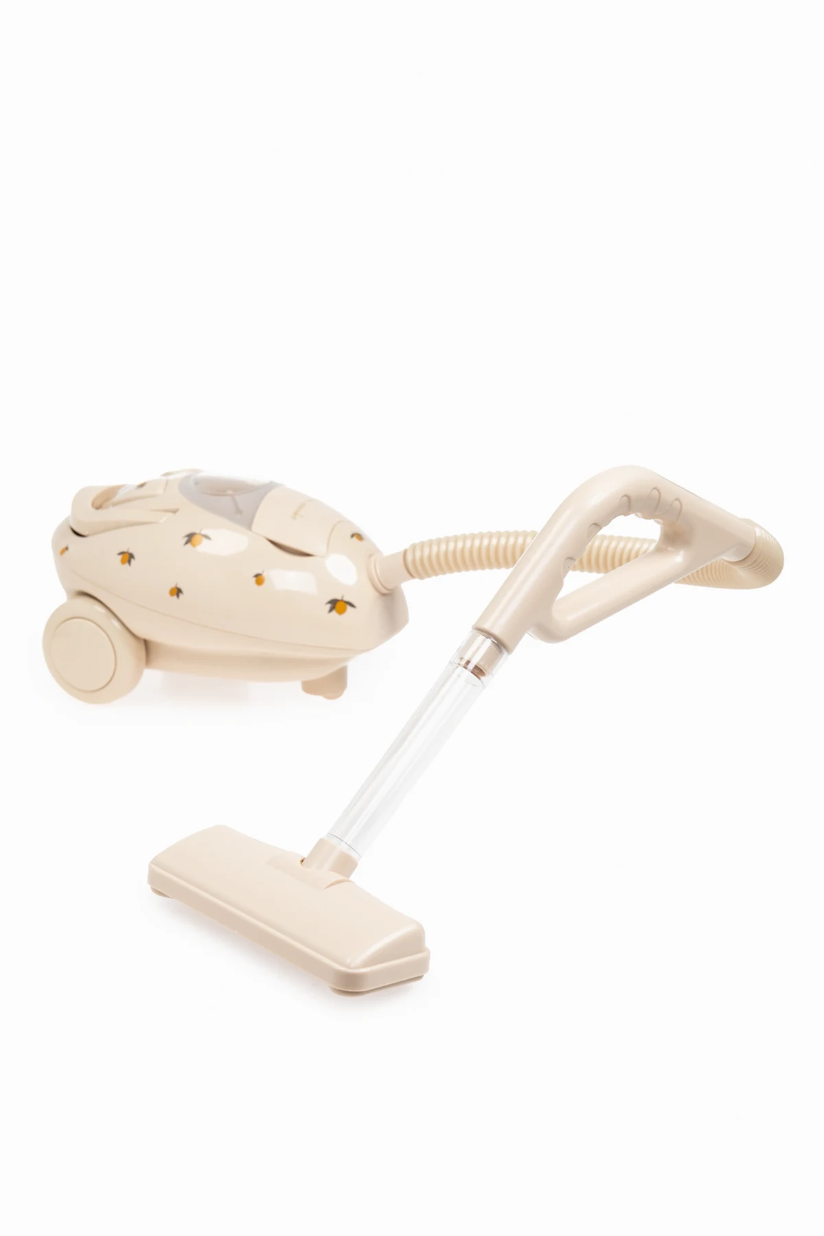 Odkurzacz zabawkowy z motywem cytryn od renomowanej duńskiej marki Konges Sløjd to harmonijne połączenie estetyki i funkcjonalności, zaprojektowane z myślą o najmłodszych. W beżowej kolorystyce, ozdobiony drobnymi ilustracjami cytryn, odkurzacz przyciąga wzrok i zachęca do zabawy.