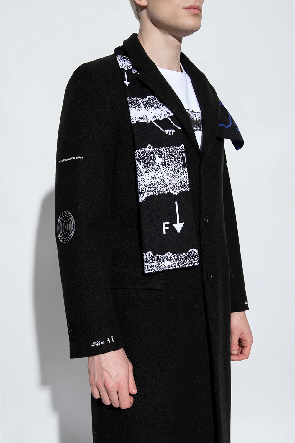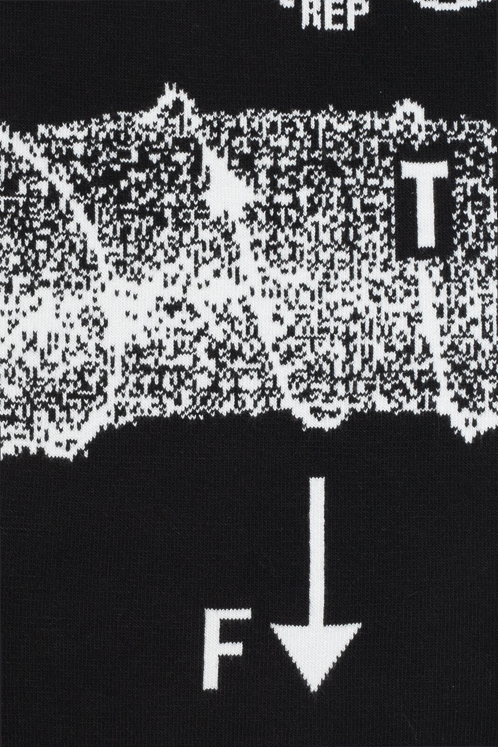 Czarno-biało-niebieski szal MSFTSREP. Ozdobiony wzorem z logo.