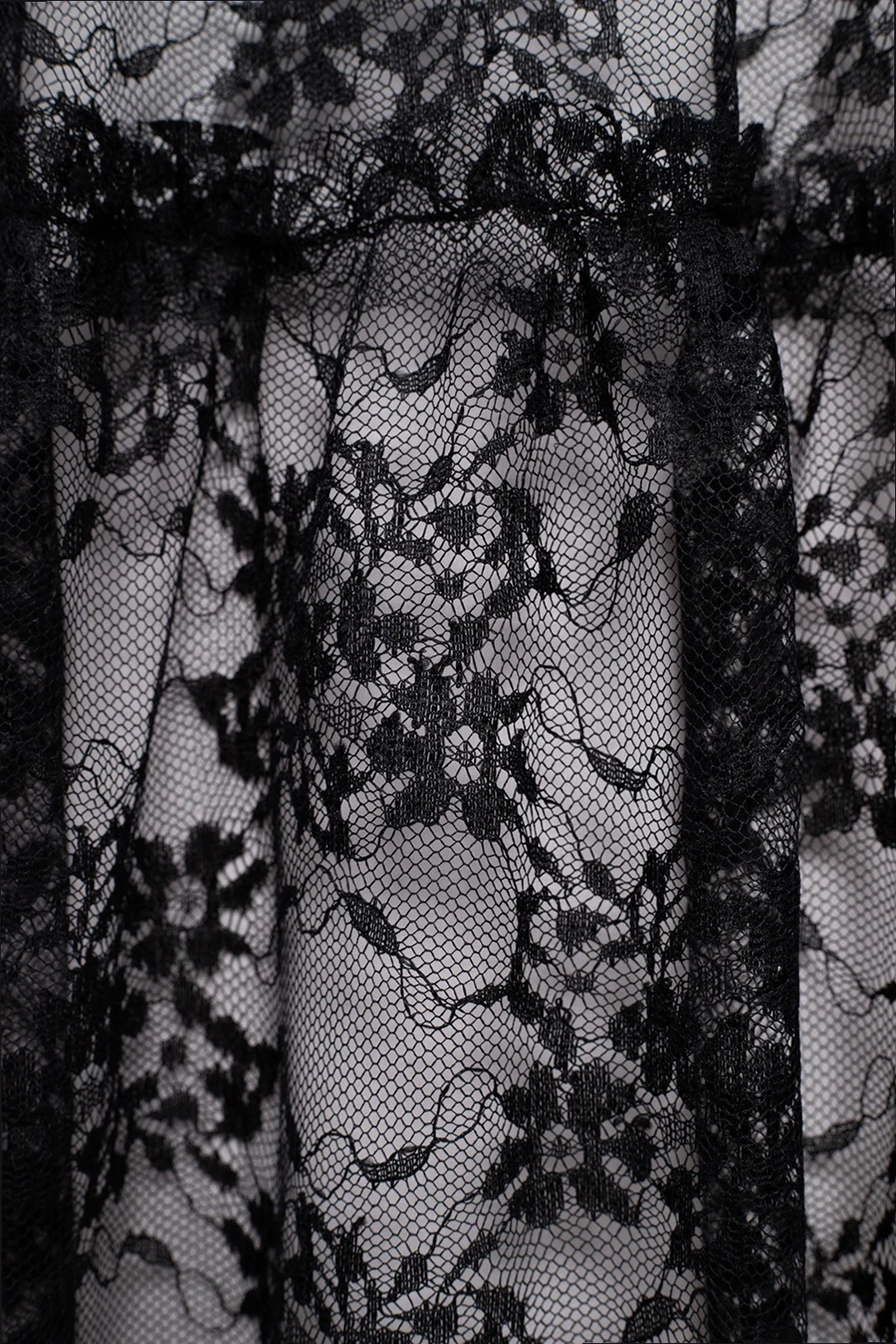 – Czarna plisowana sukienka midi z koronkową wstawką