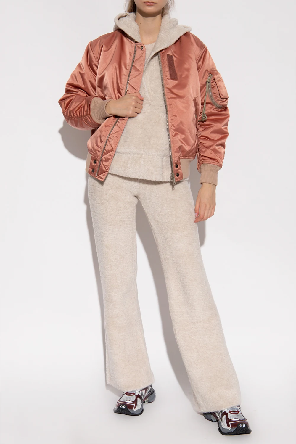 – Kremowa bluzka z obszernymi rękawami z obcisłym mankietem w stylu boho