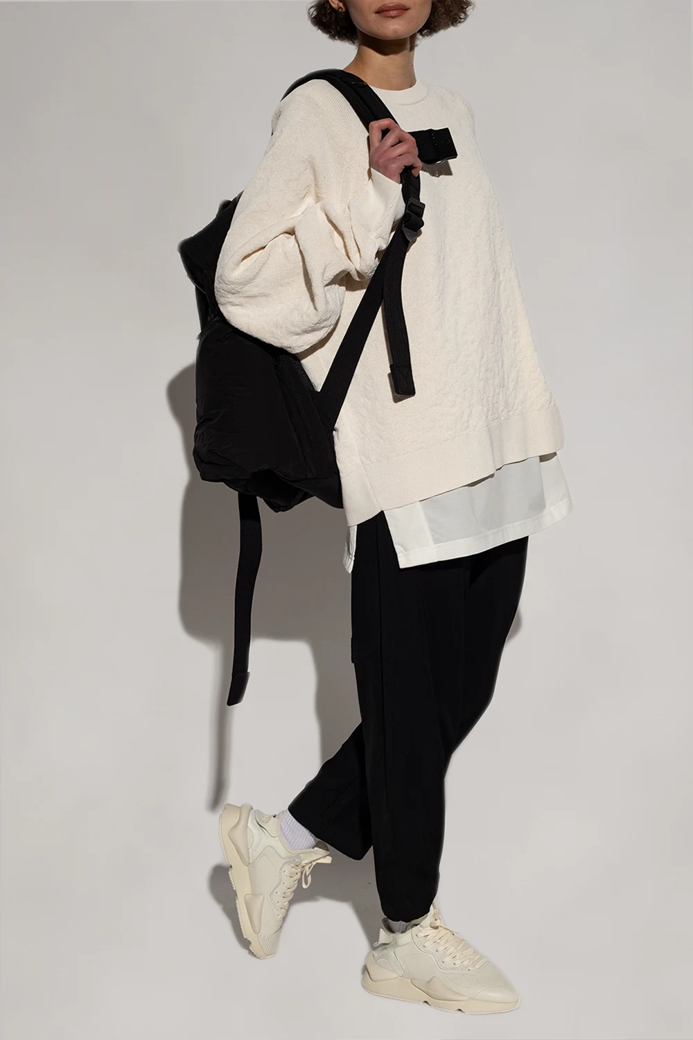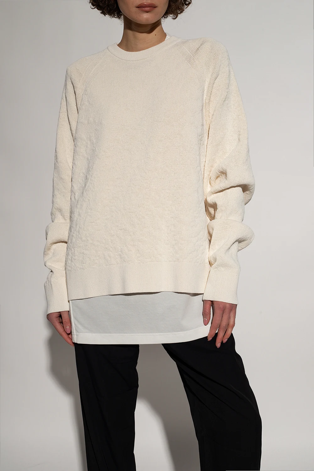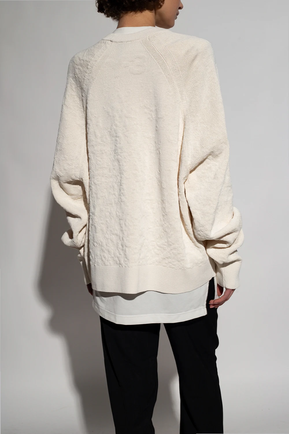 Kremowy sweter Y-3 Yohji Yamamoto. Wykonany z bawełny organicznej. Ozdobiony wytłoczonym logo. Okrągły dekolt, dół i długie rękawy wykończone ściągaczem.