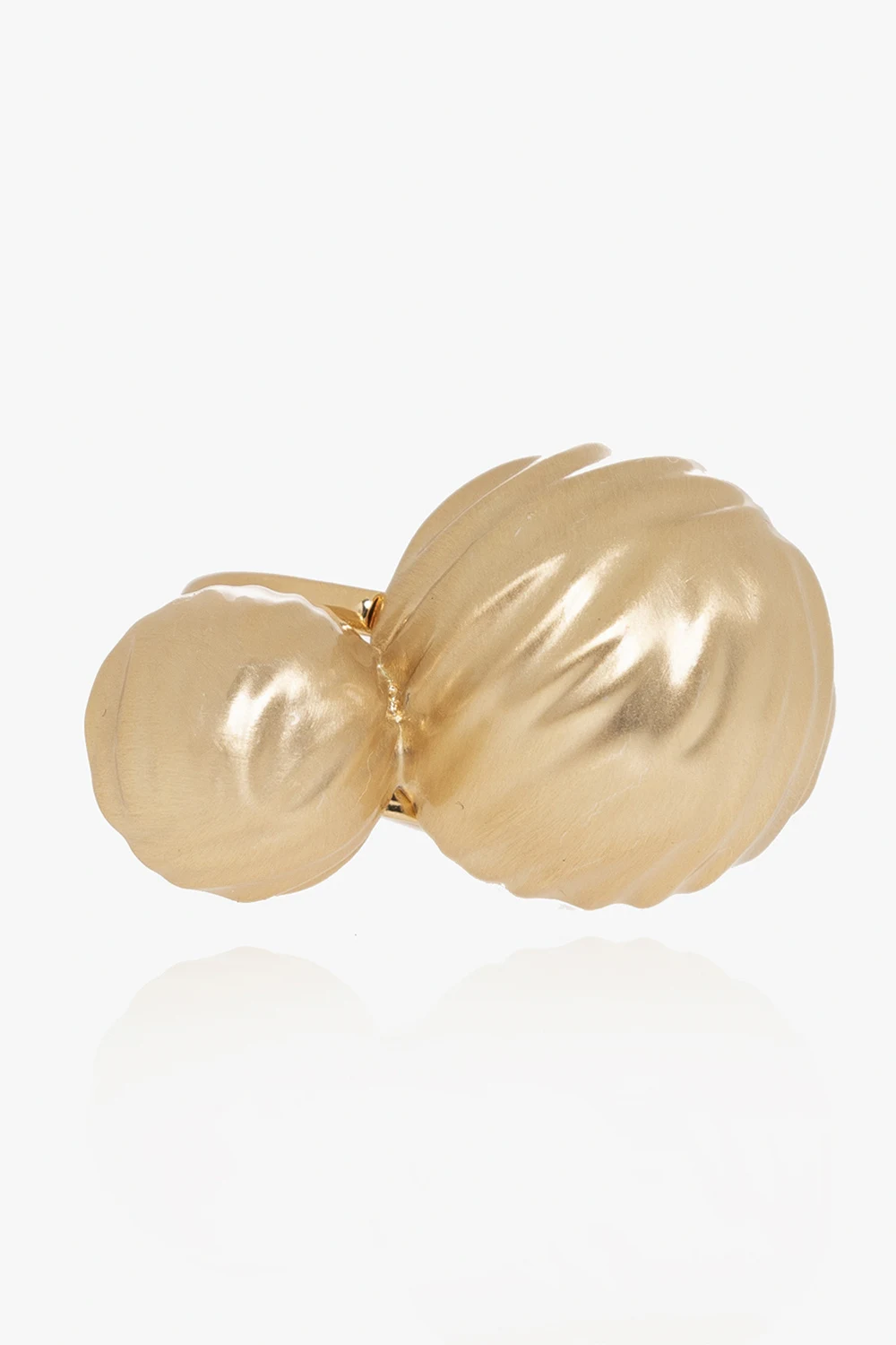 Zestaw trzech pierścieni w kolorze złotym, model ‘Brushed’ Cult Gaia. Wykonane z mosiądzu. Ozdobione półokrągłymi aplikacjami o specjalnej fakturze.